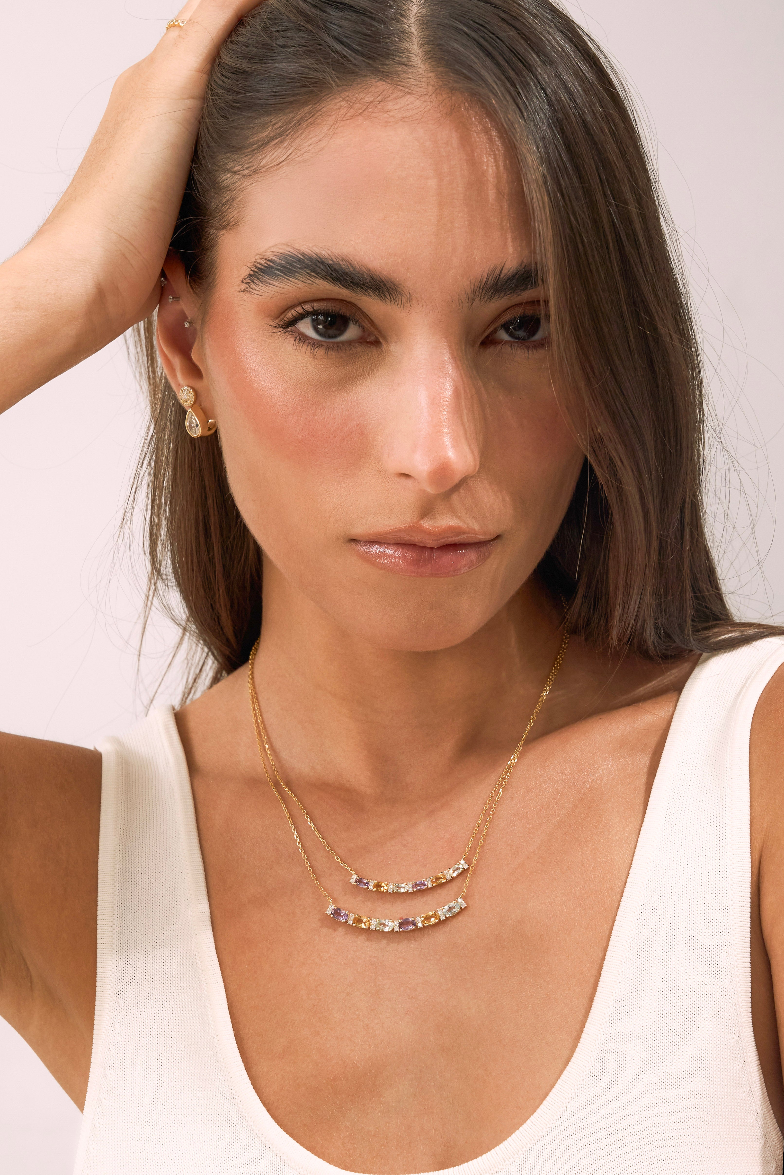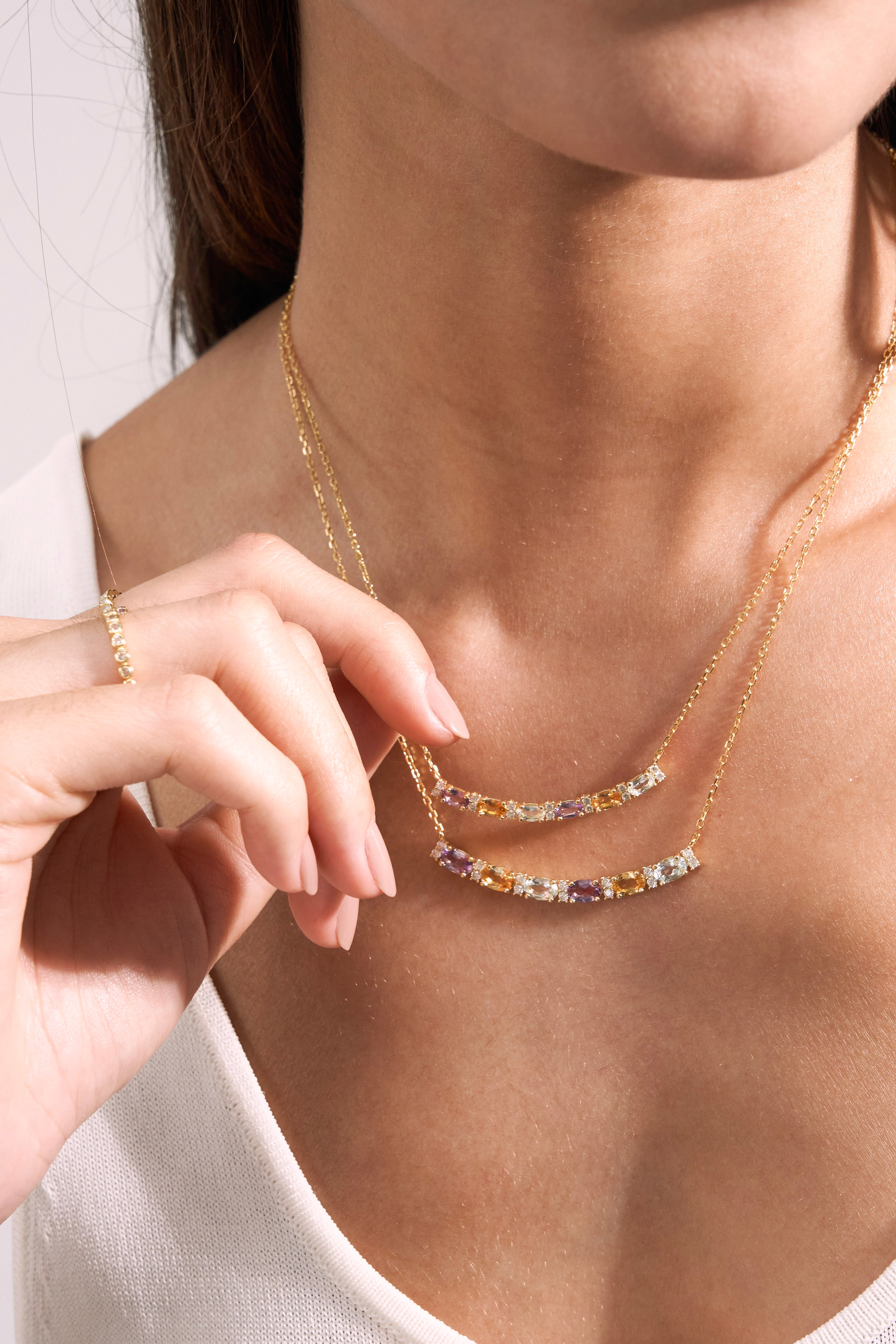 Design: Gently curved bar silhouette that sits beautifully along the collarbone, creating a refined, colorful focal point that layers effortlessly with other necklaces.