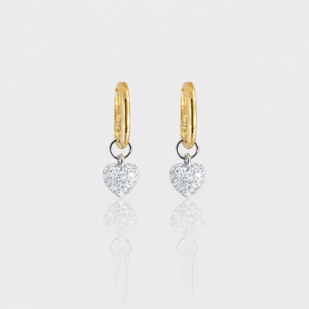 Design: Minimal hoop silhouette accented with a pavé-style moissanite heart charm for a refined yet playful look