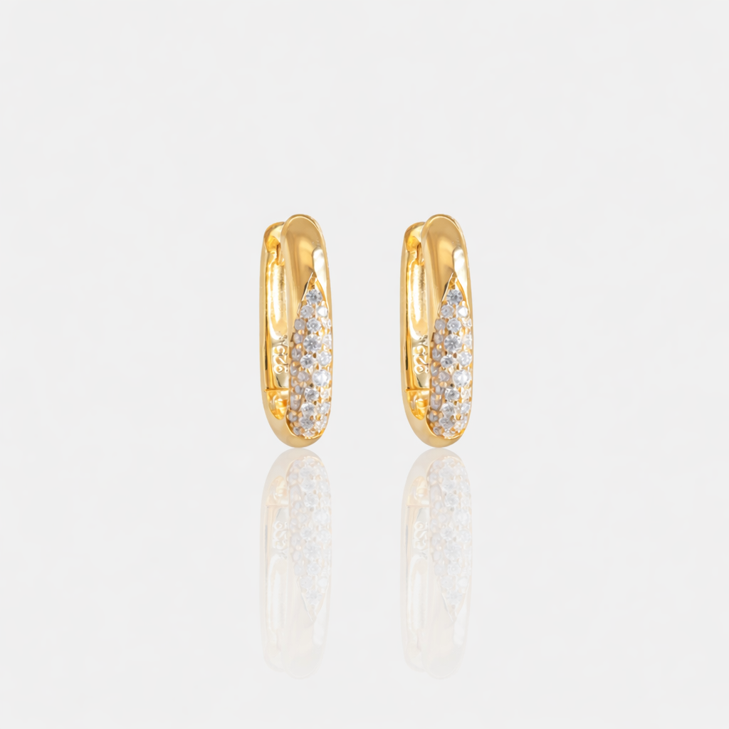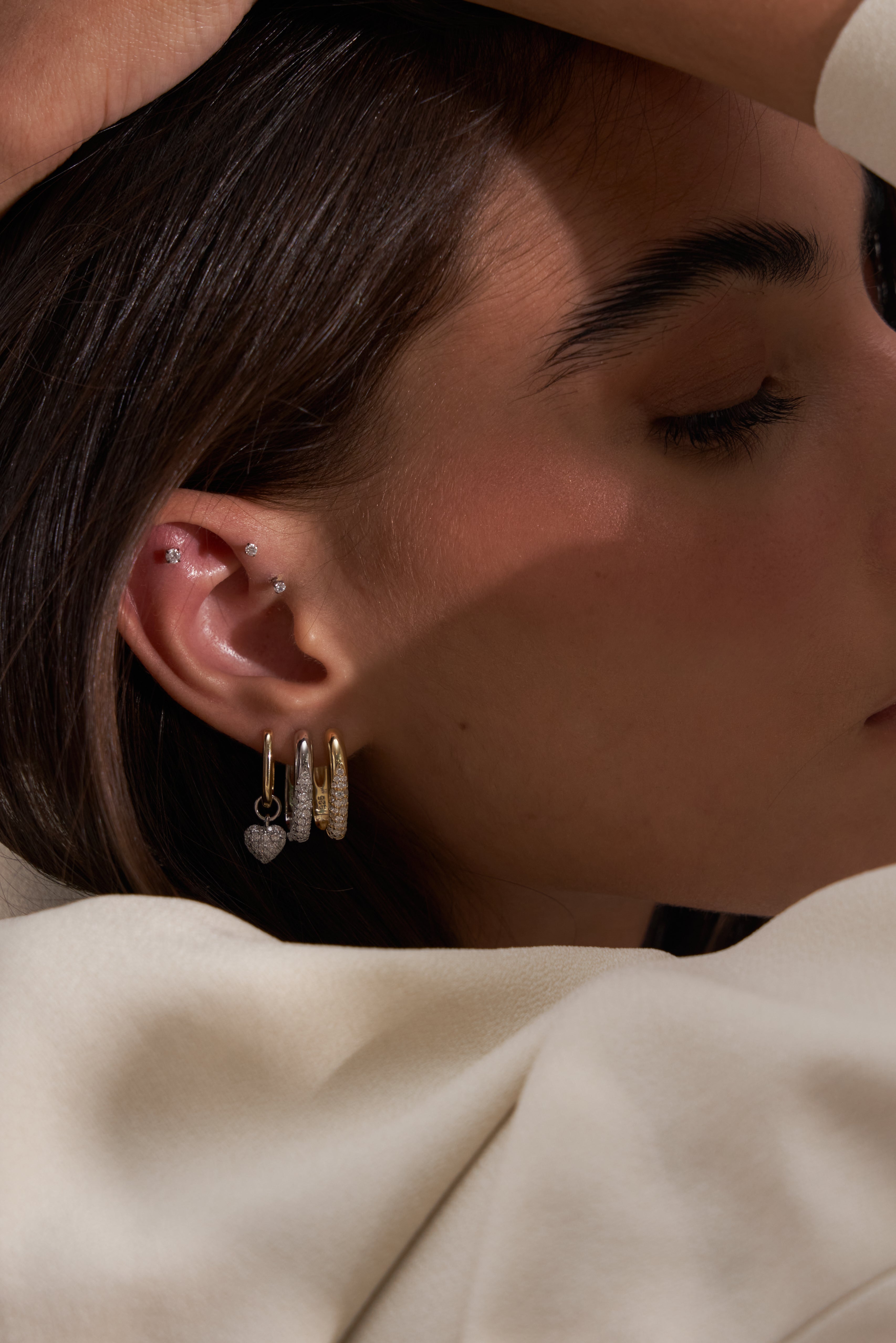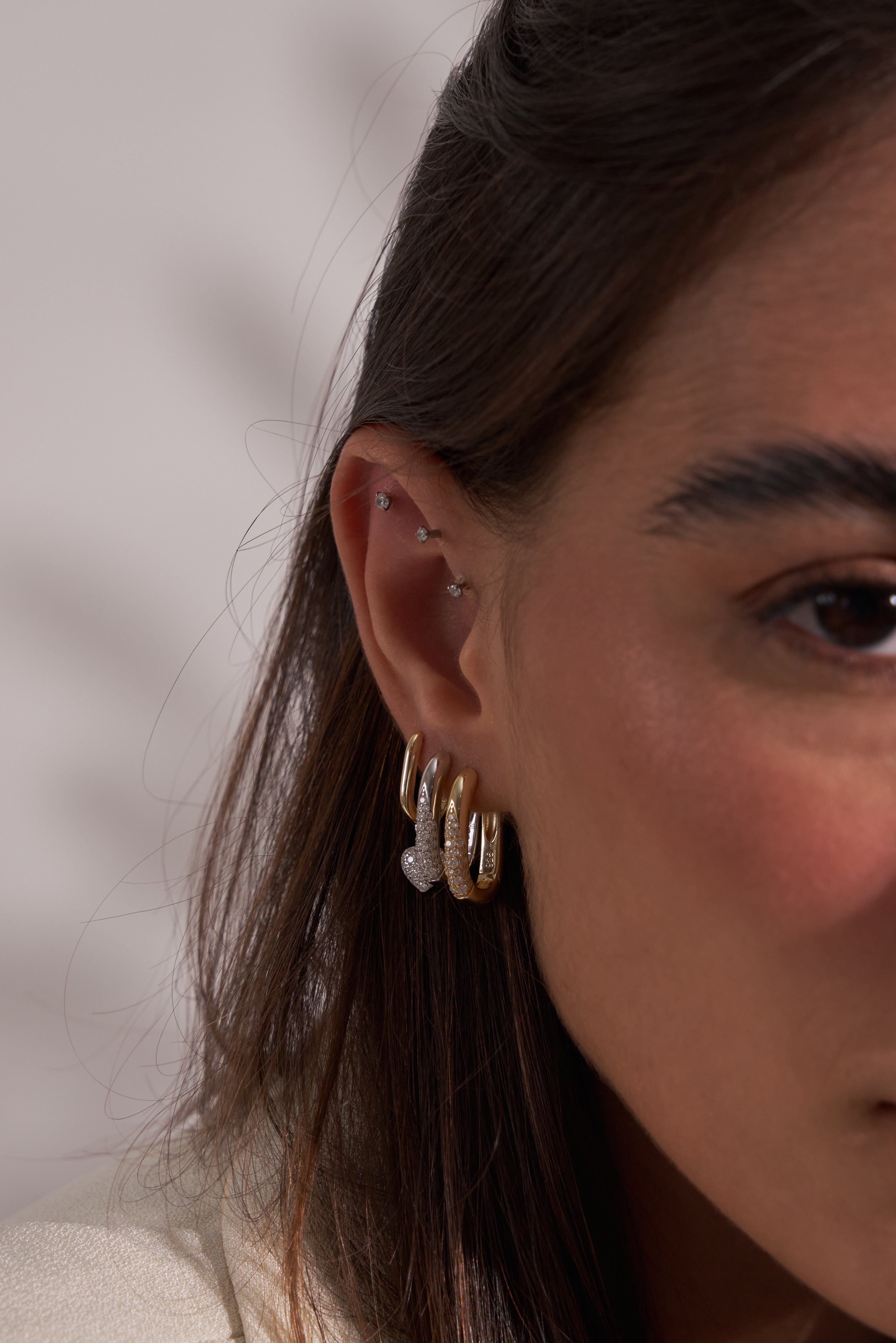 Design: Slim, polished hoops with a tapered pavé detail that elongates the ear and adds a refined touch to any look.