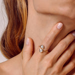 Delicate, luminous, and endlessly romantic, The Ethereal Moissanite Ring features two brilliant heart-cut stones that wrap gracefully around the finger. Its open silhouette and polished finish make it a standout piece designed to elevate any look—and its slightly adjustable fit ensures effortless comfort.