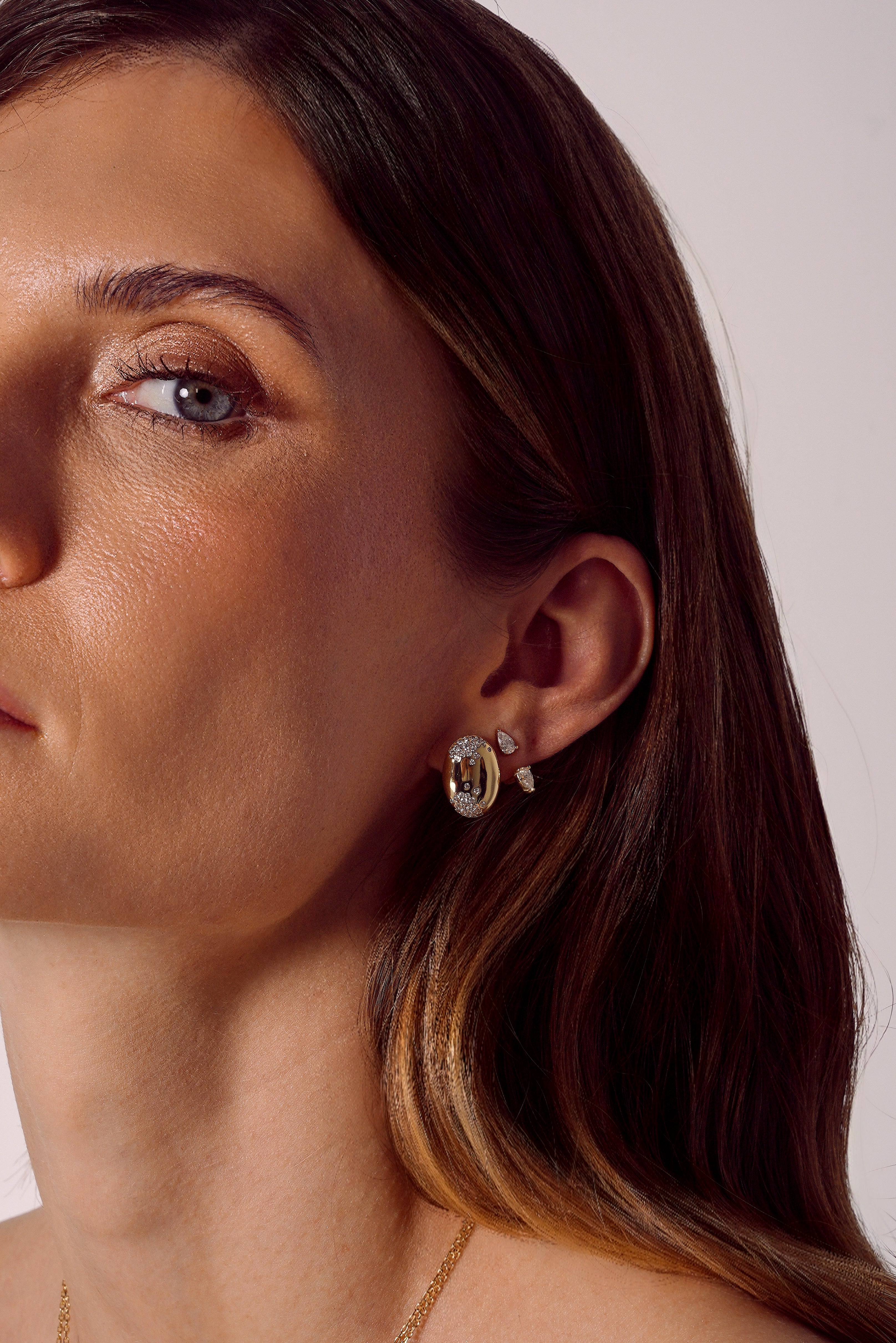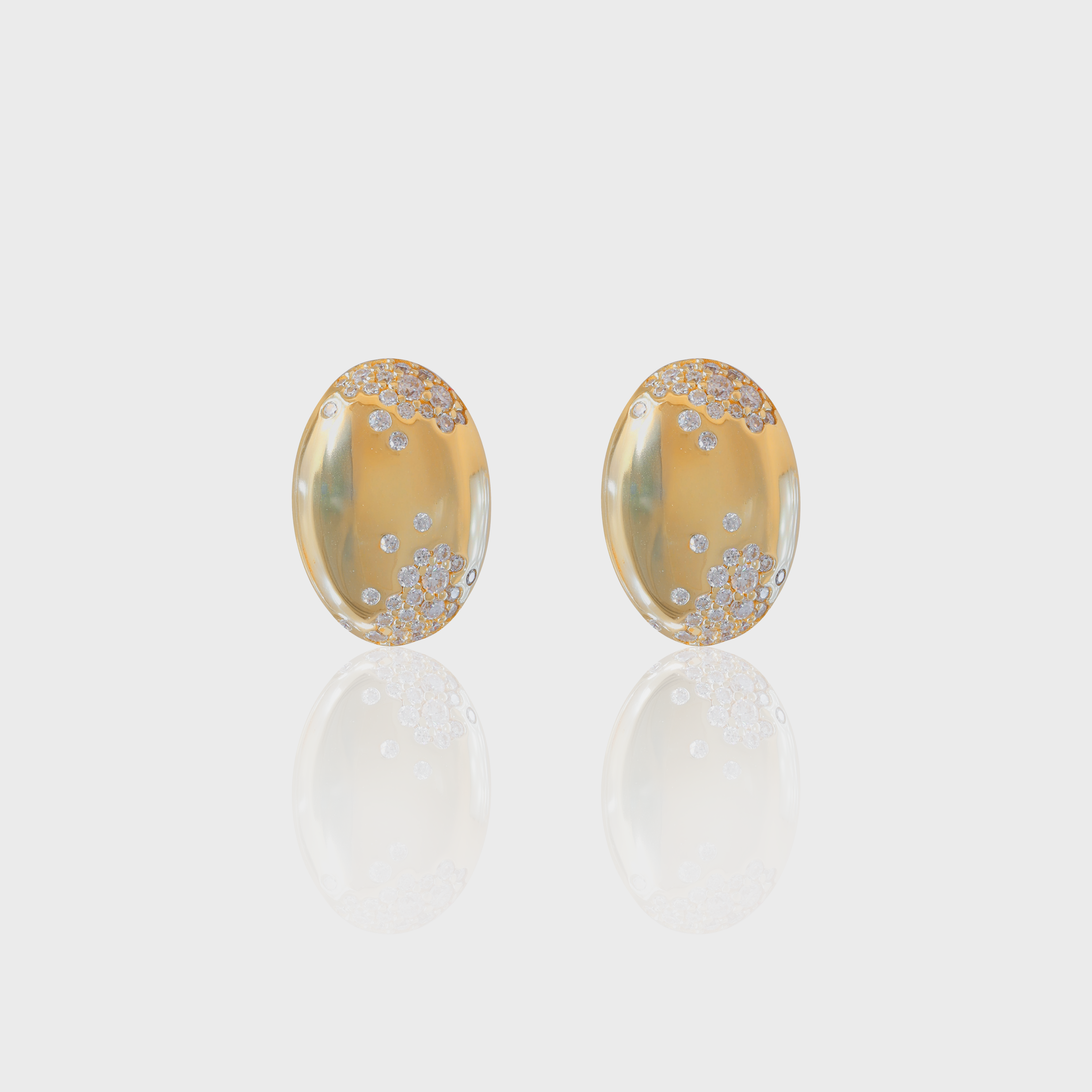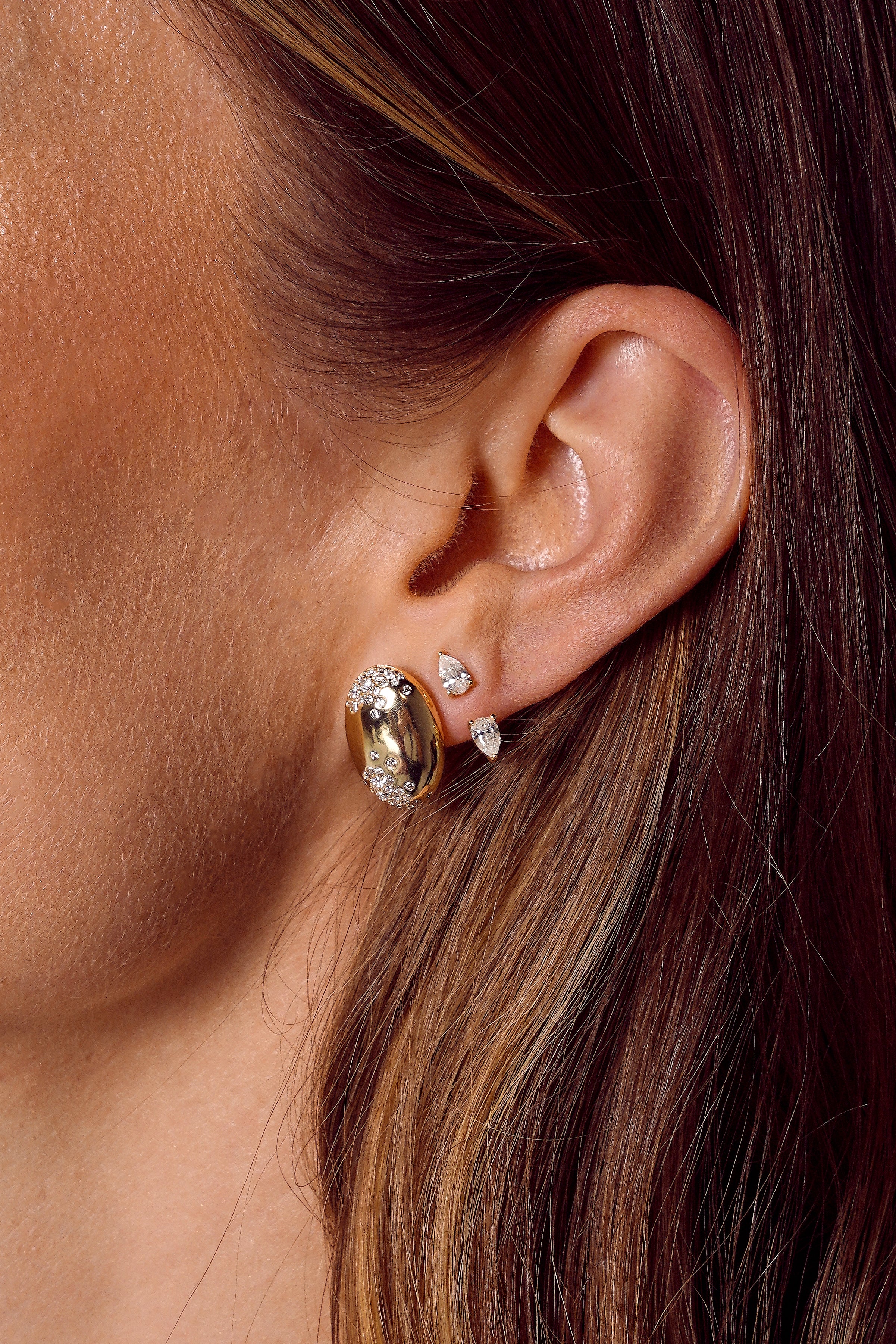Soft curves, luminous shine — The Velvet Moissanite Earrings bring a sculptural elegance to your jewelry collection. Designed in 925 sterling silver and plated in your choice of 14K gold or rhodium, each earring features a smooth, domed silhouette accented with scattered premium moissanite stones for a refined, modern sparkle. Their 12×17mm shape offers a statement presence while remaining effortlessly wearable for any occasion.