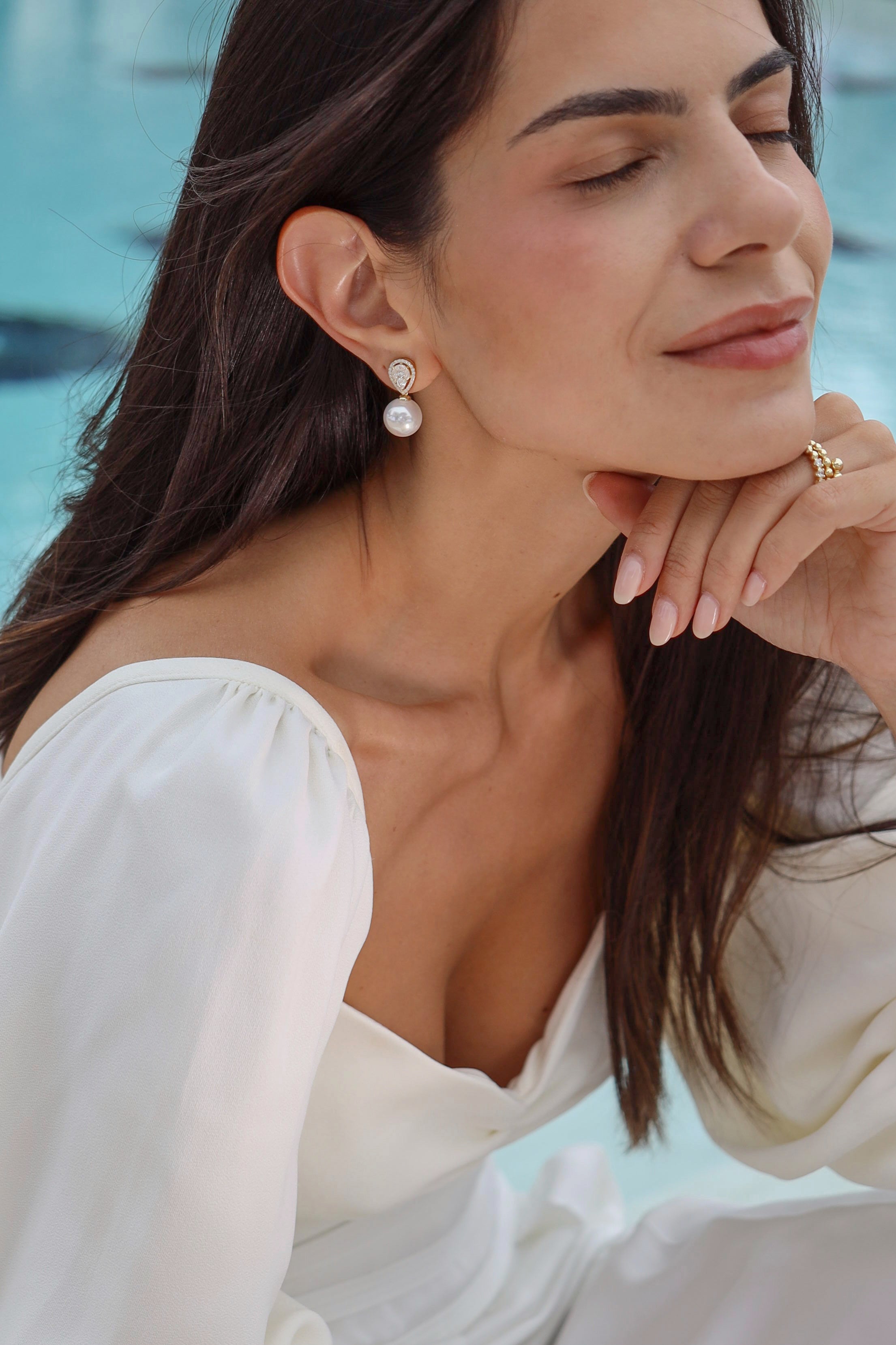 Experience unparalleled elegance with our Le Magnifique Earrings, a crown jewel from our exclusive Soleil de France Collection. These exquisite earrings are crafted with premium moissanite stones and natural freshwater pearls, offering a breathtaking blend of sophistication and ethical luxury.