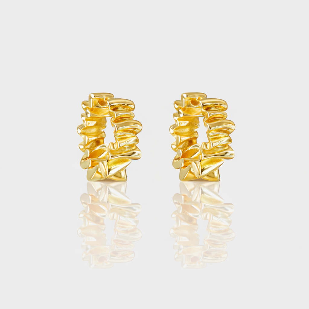 Bold yet effortless, the Rosetta Hoops are designed to make a statement while remaining incredibly lightweight and comfortable. Their sculptural, layered silhouette adds a modern edge to any look—perfect for everyday wear or elevating a minimalist outfit with a touch of shine.