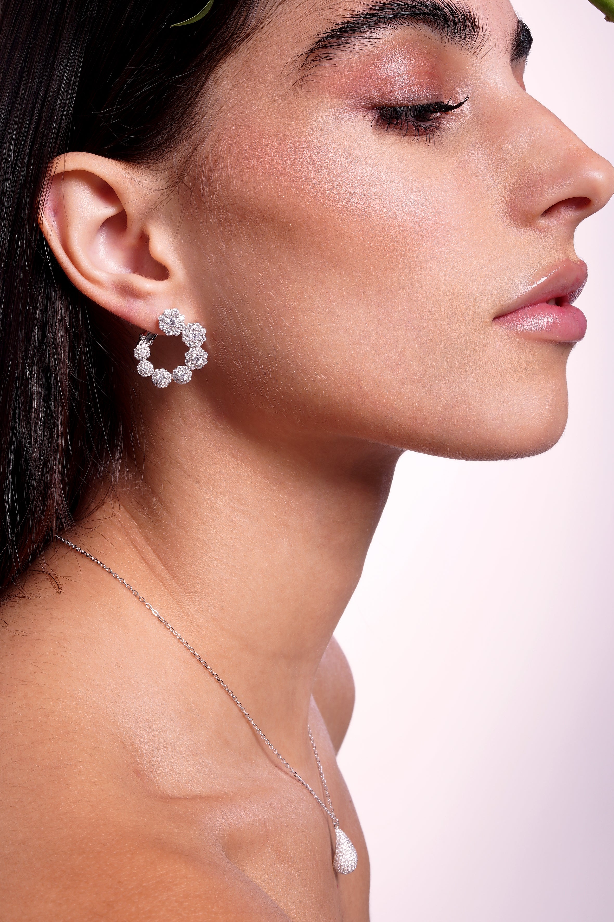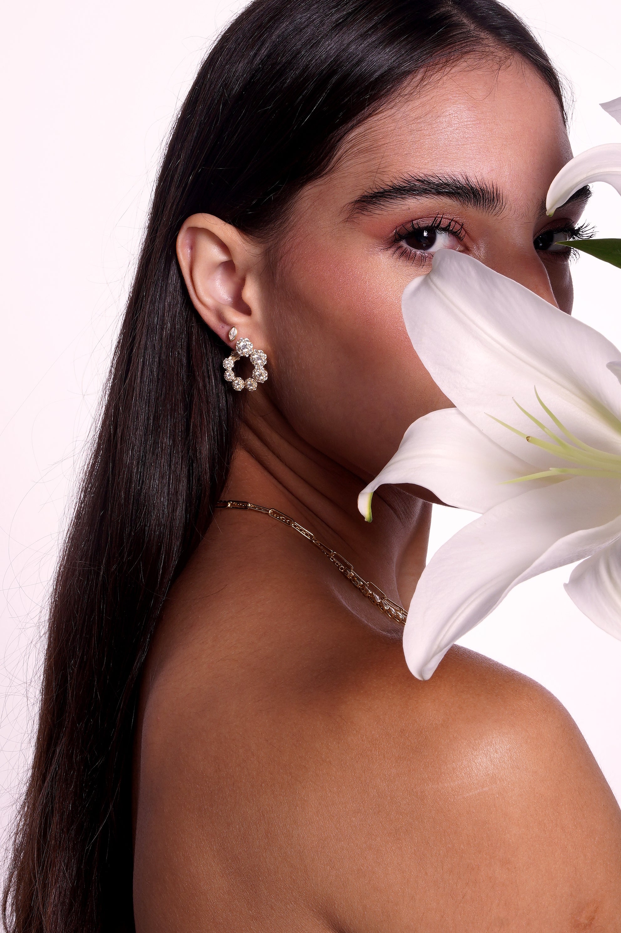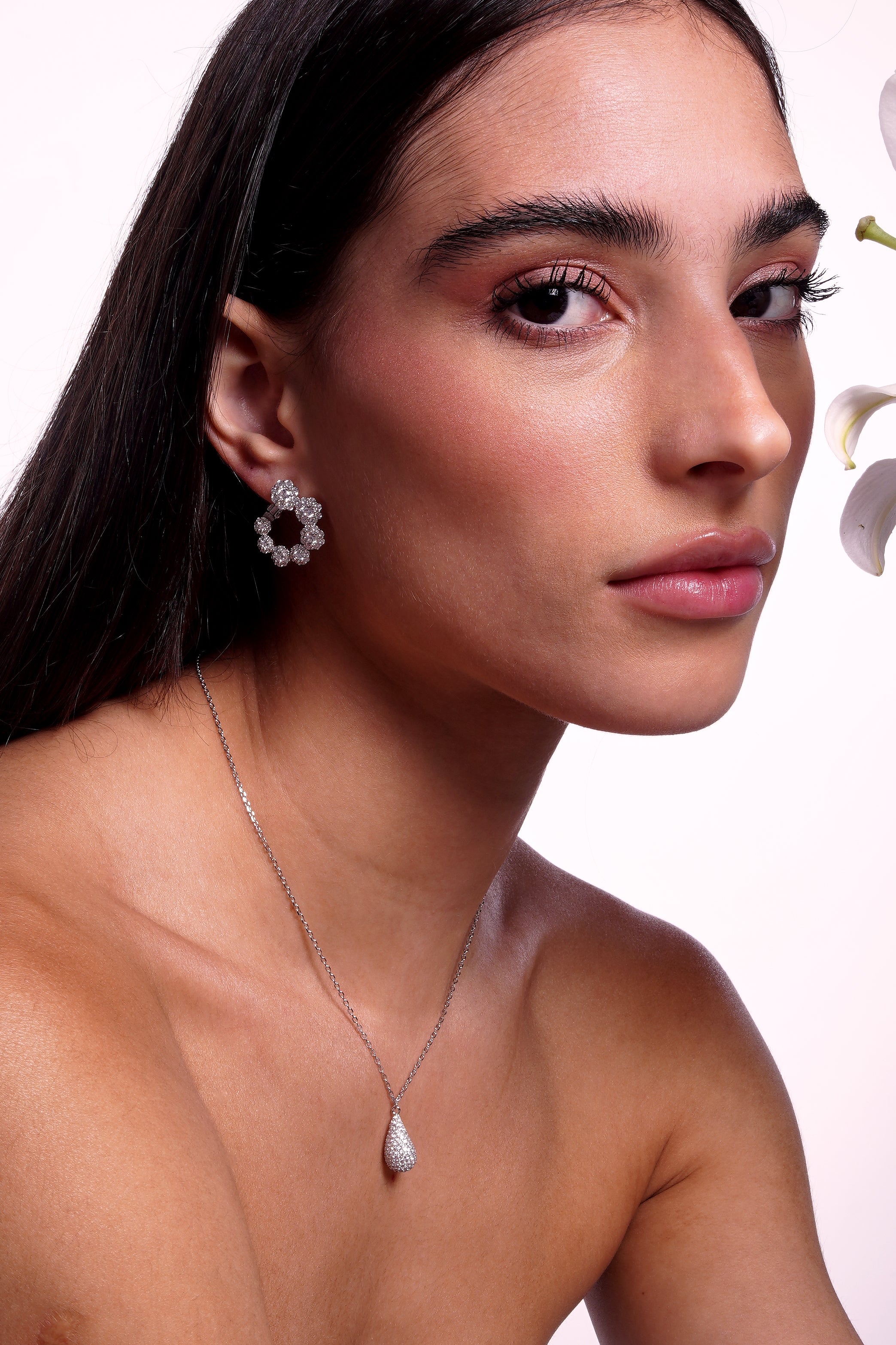 Introducing the elegant White Lily Earrings. Made of 925 sterling silver, these earrings come in a 14K gold or rhodium plating and feature high quality white crystal zircons. Measuring at a diameter of 23mm, they are hypoallergenic and nickel-free, making them both stylish and safe to wear. Elevate your look with these stunning earrings.