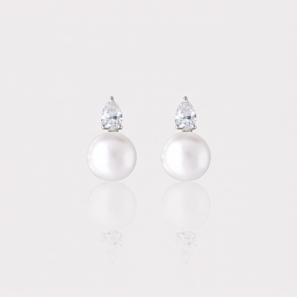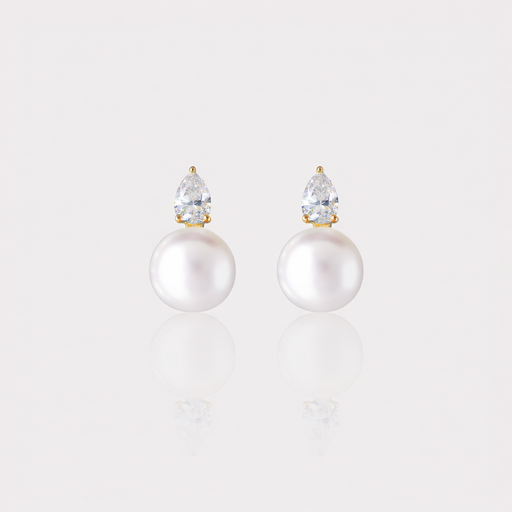 Design: A delicate pear-stone stud paired with a luminous pearl drop, creating a graceful, modern silhouette.