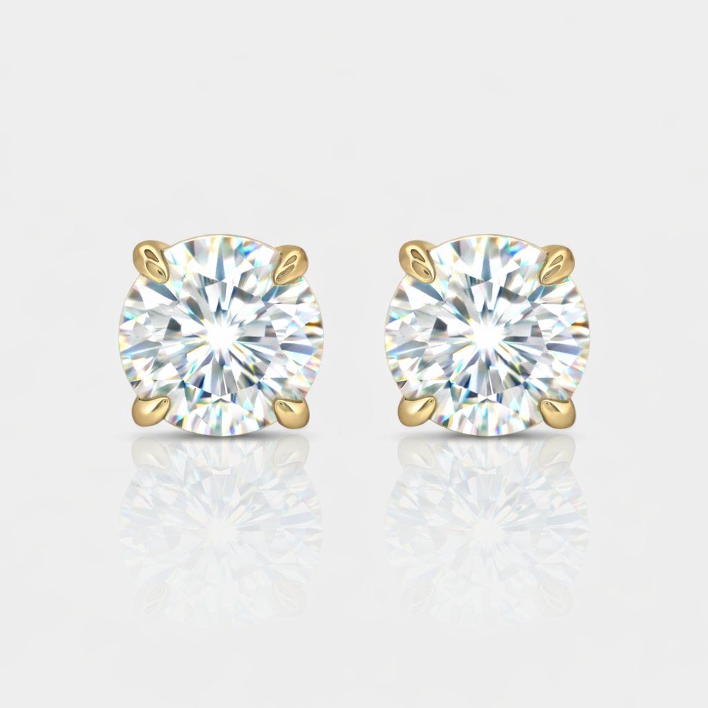 Understated and undeniably gorgeous, these 3ct moissanite white or yellow gold stud earrings are a must for every woman's jewelry box.
