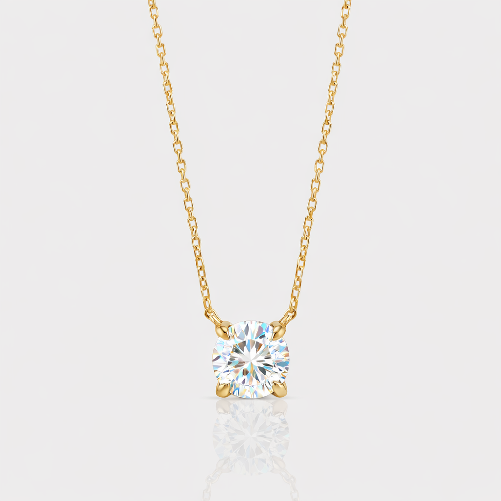 Experience the timelessness of elegance with The Classic Necklace, crafted with care from 925 sterling silver and double plated in 14k gold or rhodium for superior durability. Its 3ct (9mm) high quality Moissanite adds a sparkle of sophistication, while its 16" (40cm) + 2" (5cm) extensor and hypoallergenic, nickel-free material make The Classic Necklace a must-have for refined style.