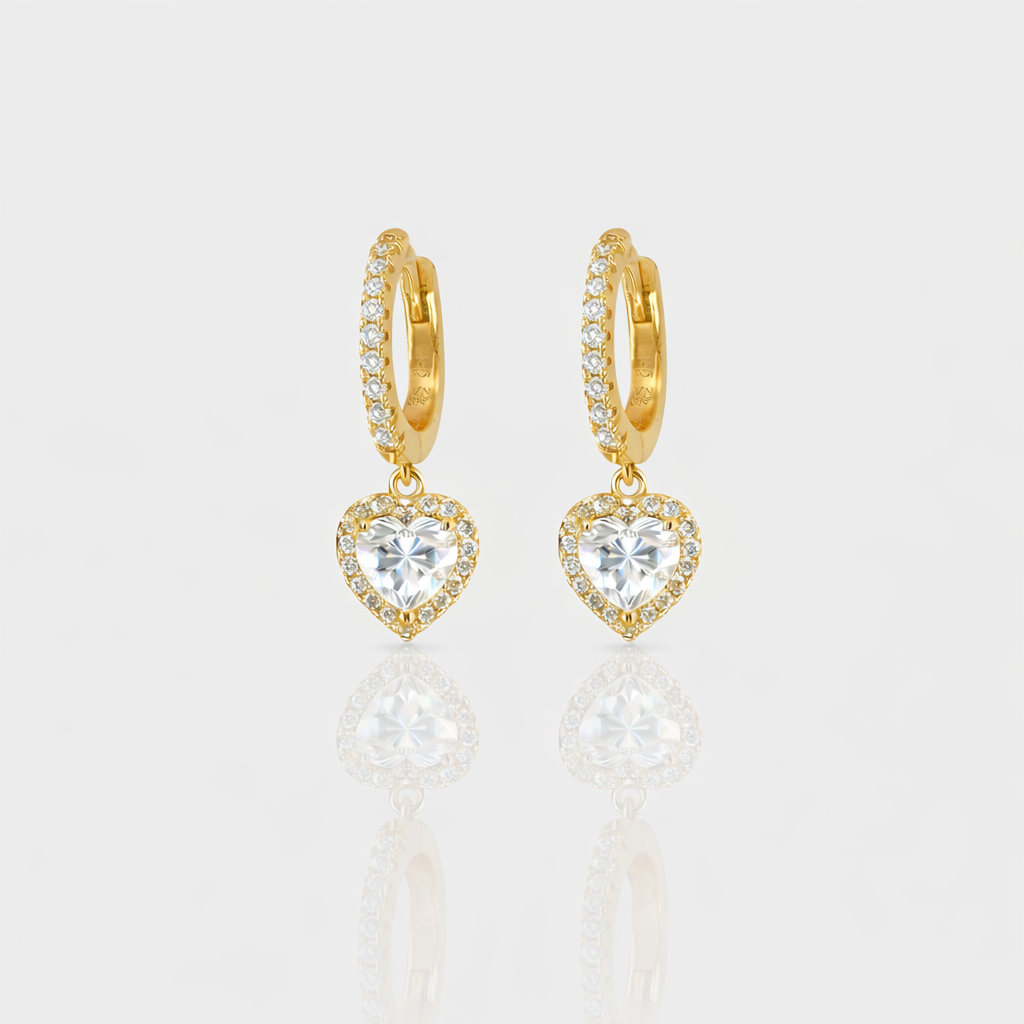 - Design: Each earring showcases a stunning heart-shaped center stone surrounded by sparkling accents, creating a captivating effect.