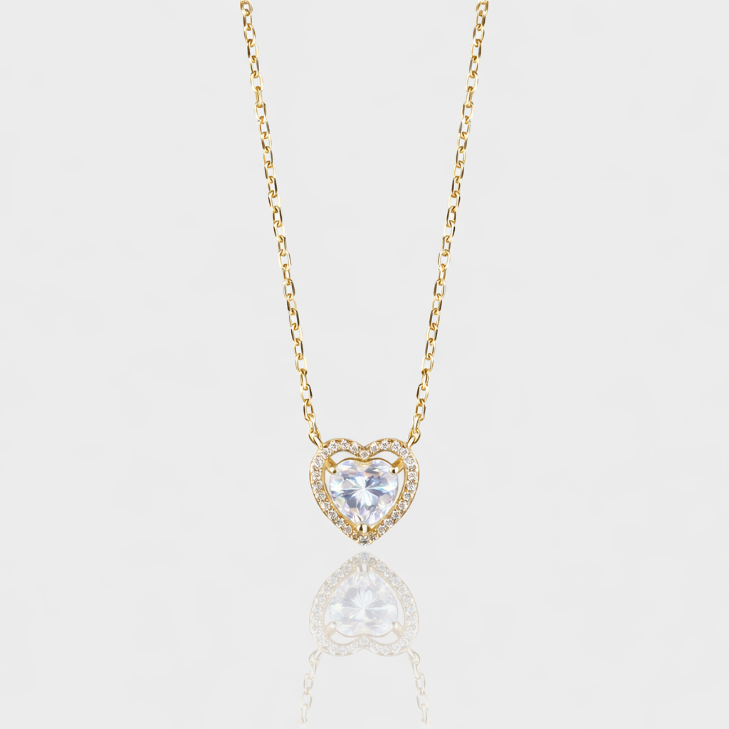A symbol of everlasting elegance — The Forever Moissanite Necklace captures the essence of timeless romance. Crafted from 925 sterling silver and plated in gold or rhodium, it features a radiant 11mm heart-cut moissanite framed by a delicate halo of shimmering stones. Designed to glimmer softly with every movement, this necklace embodies refined beauty meant to be worn forever.