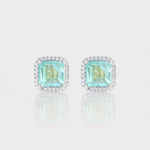 Where luminous color meets radiant sparkle. These statement earrings feature a vibrant fusion paraíba center stone surrounded by a delicate halo of moissanites. A bold yet refined design, perfect for elevating your everyday or finishing an evening look.