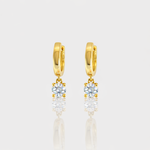 - Design: Each earring showcases a sparkling center stone, elegantly suspended from a smooth hoop for a chic, minimalist look.