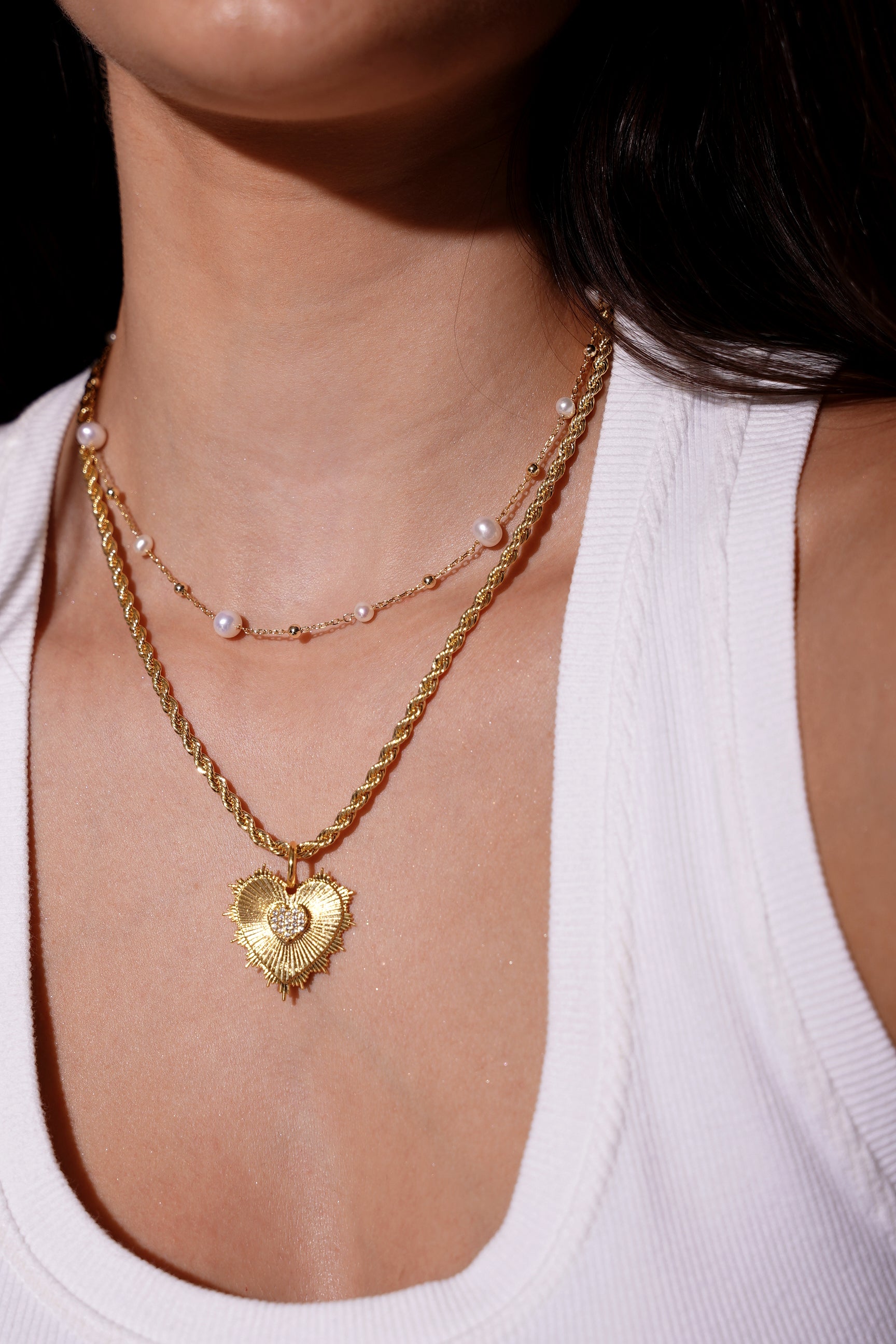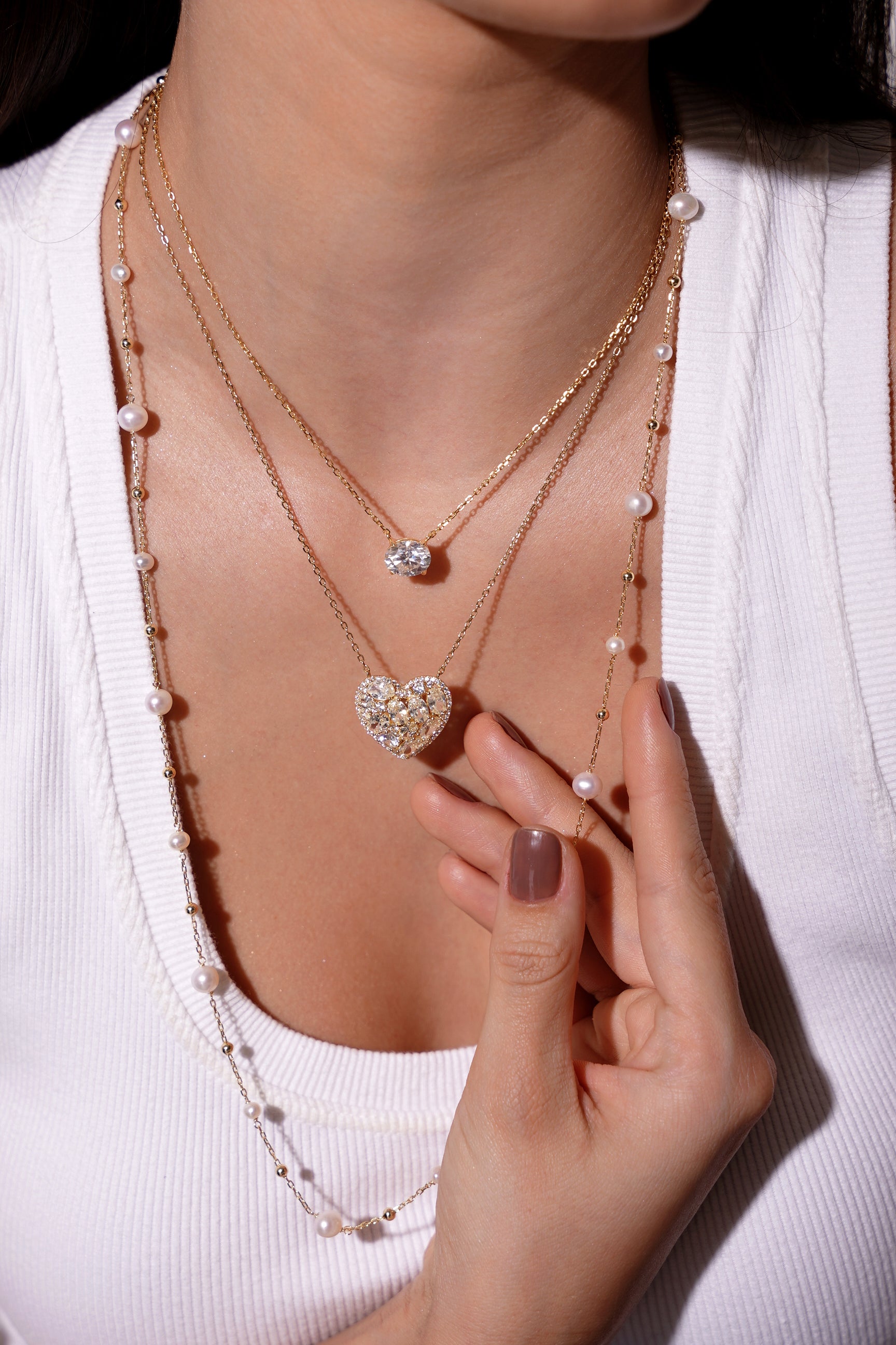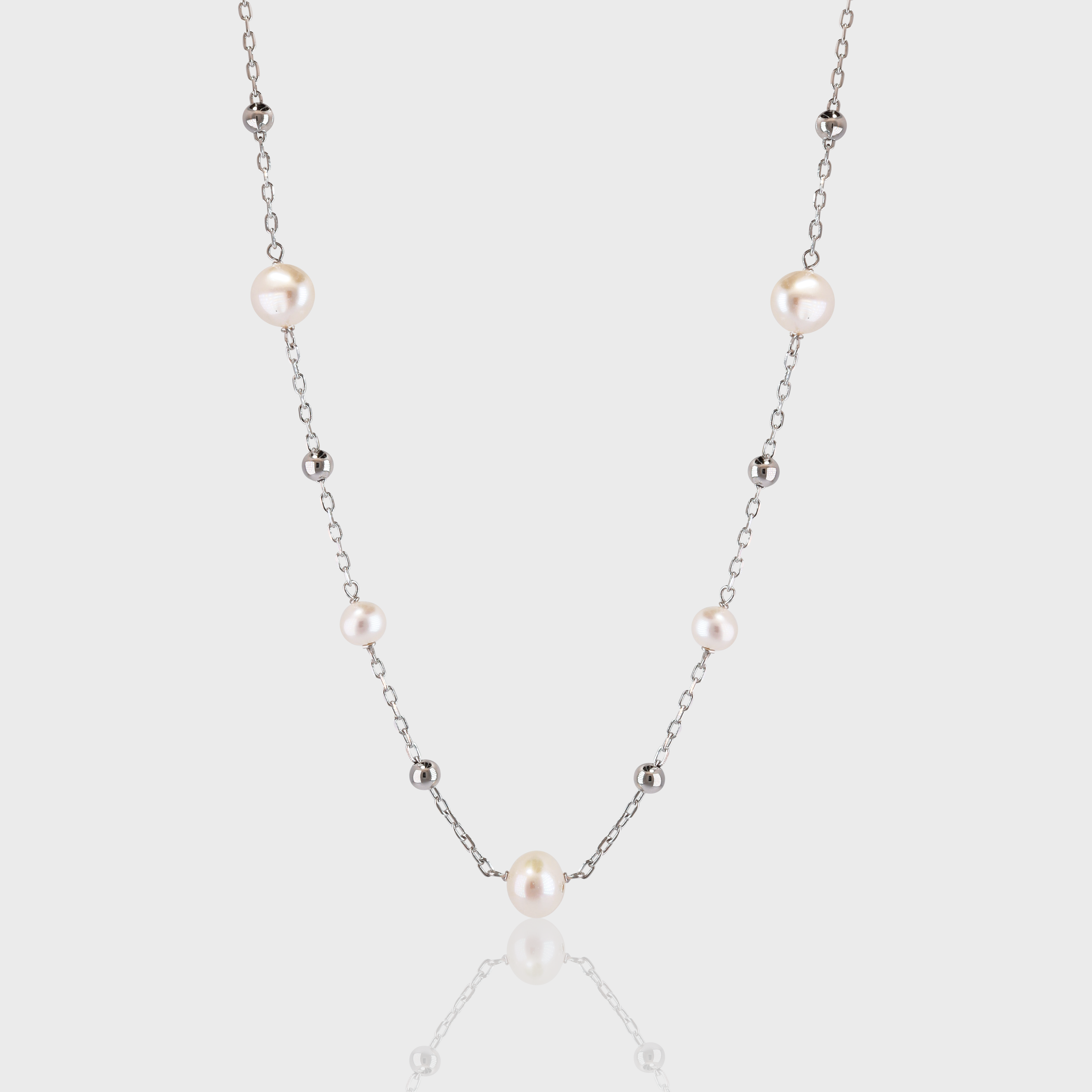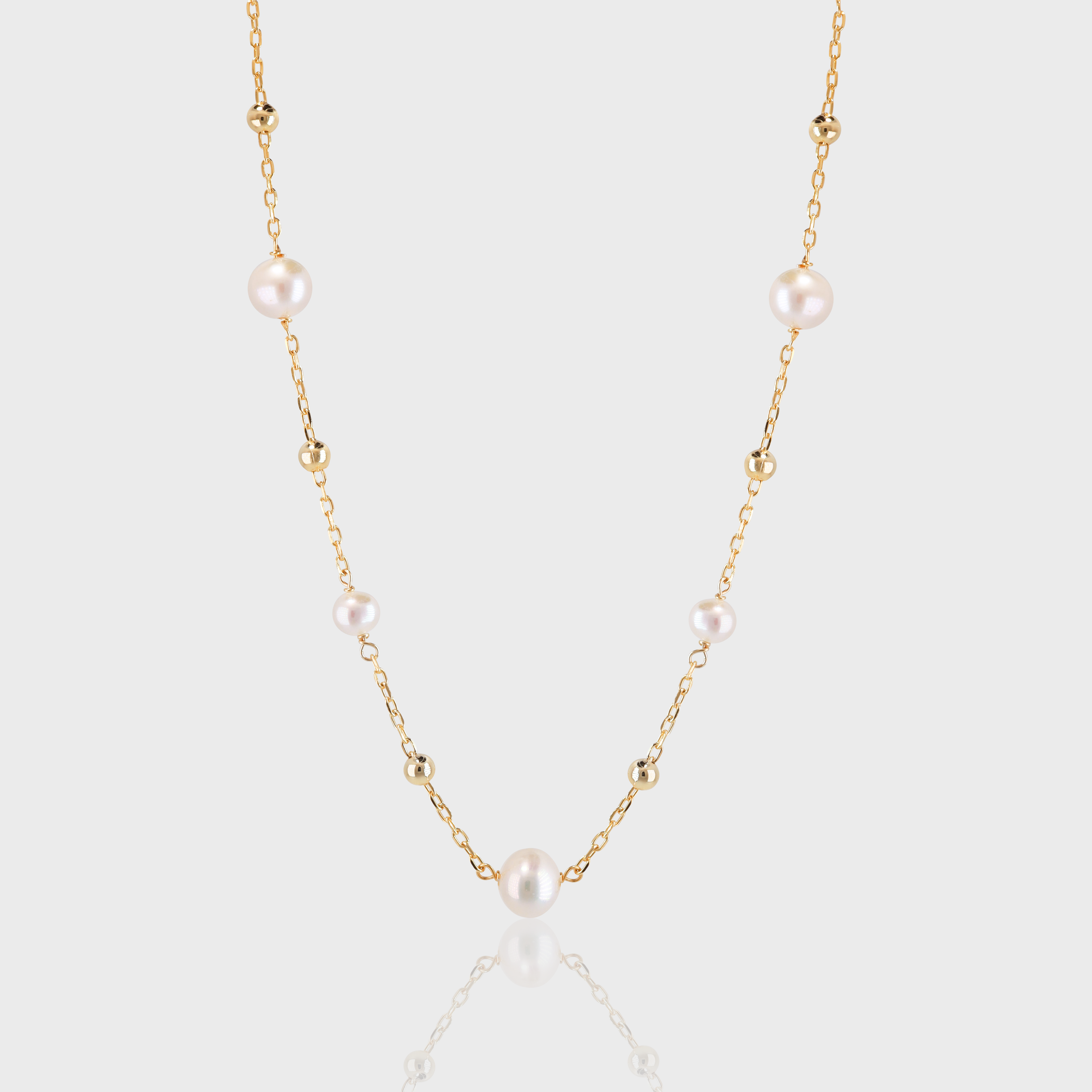 - Design: Natural pearls interspersed with gold and rhodium-plated accents for a chic and elegant effect