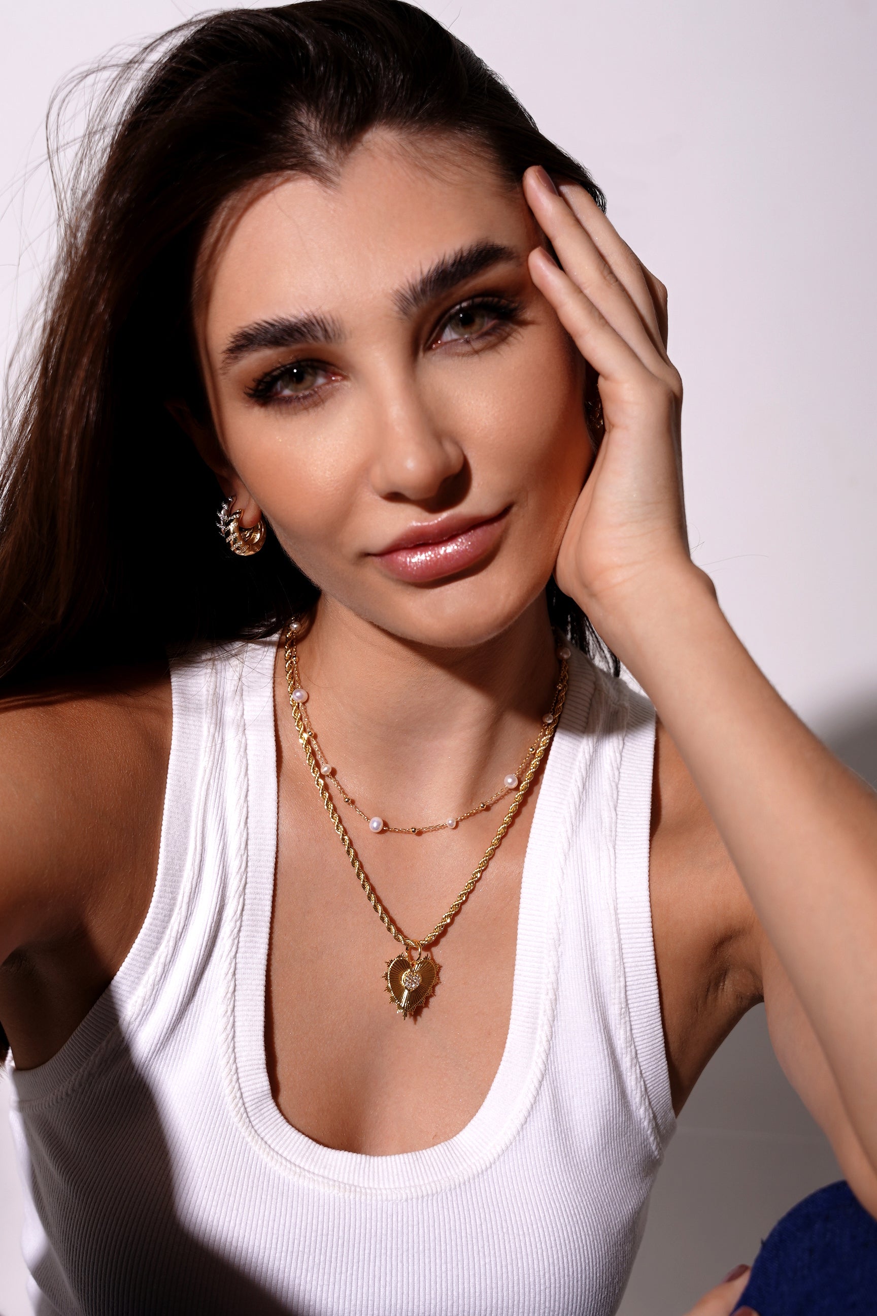 The Ortisei Necklace showcases the timeless elegance of natural pearls, beautifully complemented by gold and rhodium-plated accents. Available in two lengths (39cm + 5cm and 70cm + 5cm), these necklaces look stunning worn separately or layered together, creating a sophisticated and harmonious look. Crafted in sterling silver, this necklace exudes both luxury and grace.