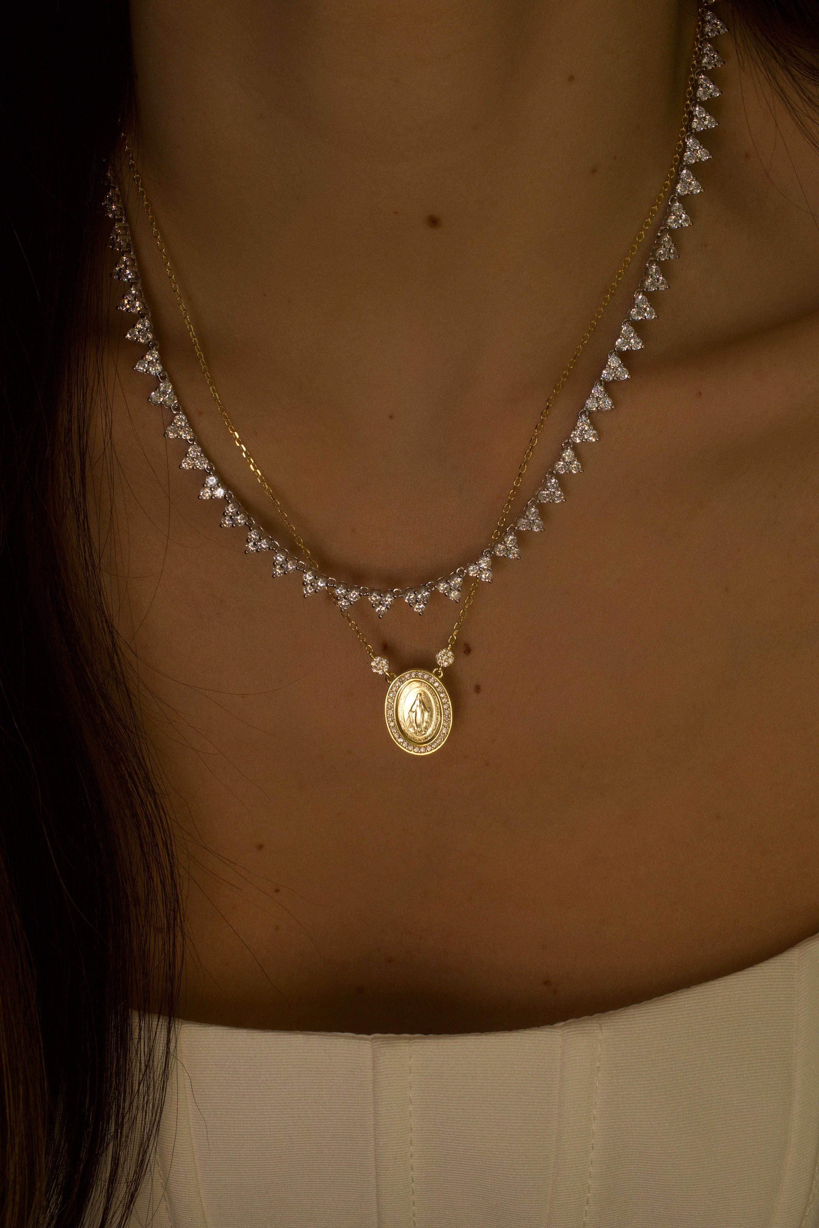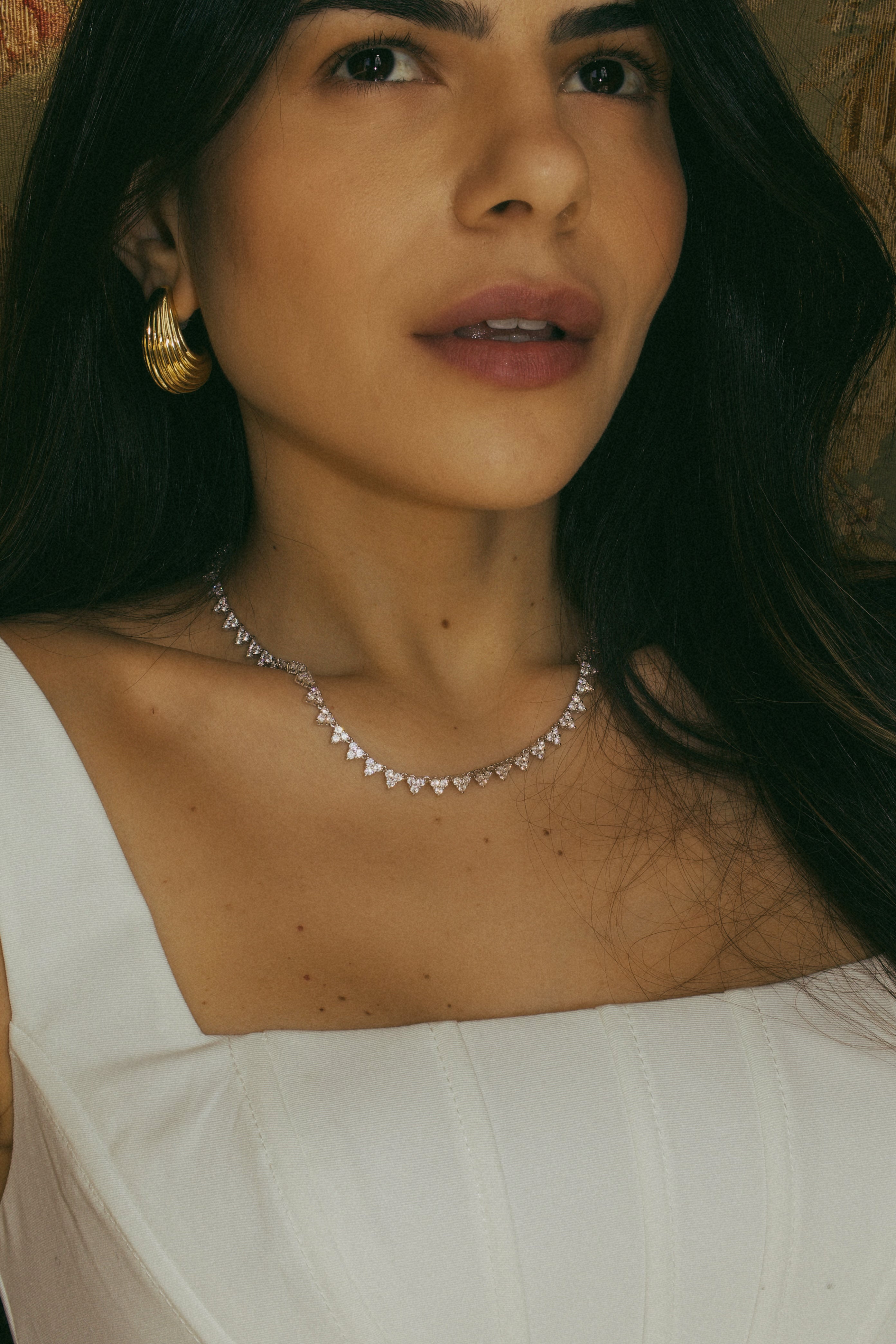 Indulge in luxury with our - Palais Royal - Necklace. Meticulously crafted with 925 Sterling Silver and available in 14K Gold or Rhodium plating, this necklace is adorned with high quality crystal zircons for a touch of elegance. Hypoallergenic and nickel-free, this necklace offers both style and comfort. Perfect for adding a touch of sophistication to any outfit.