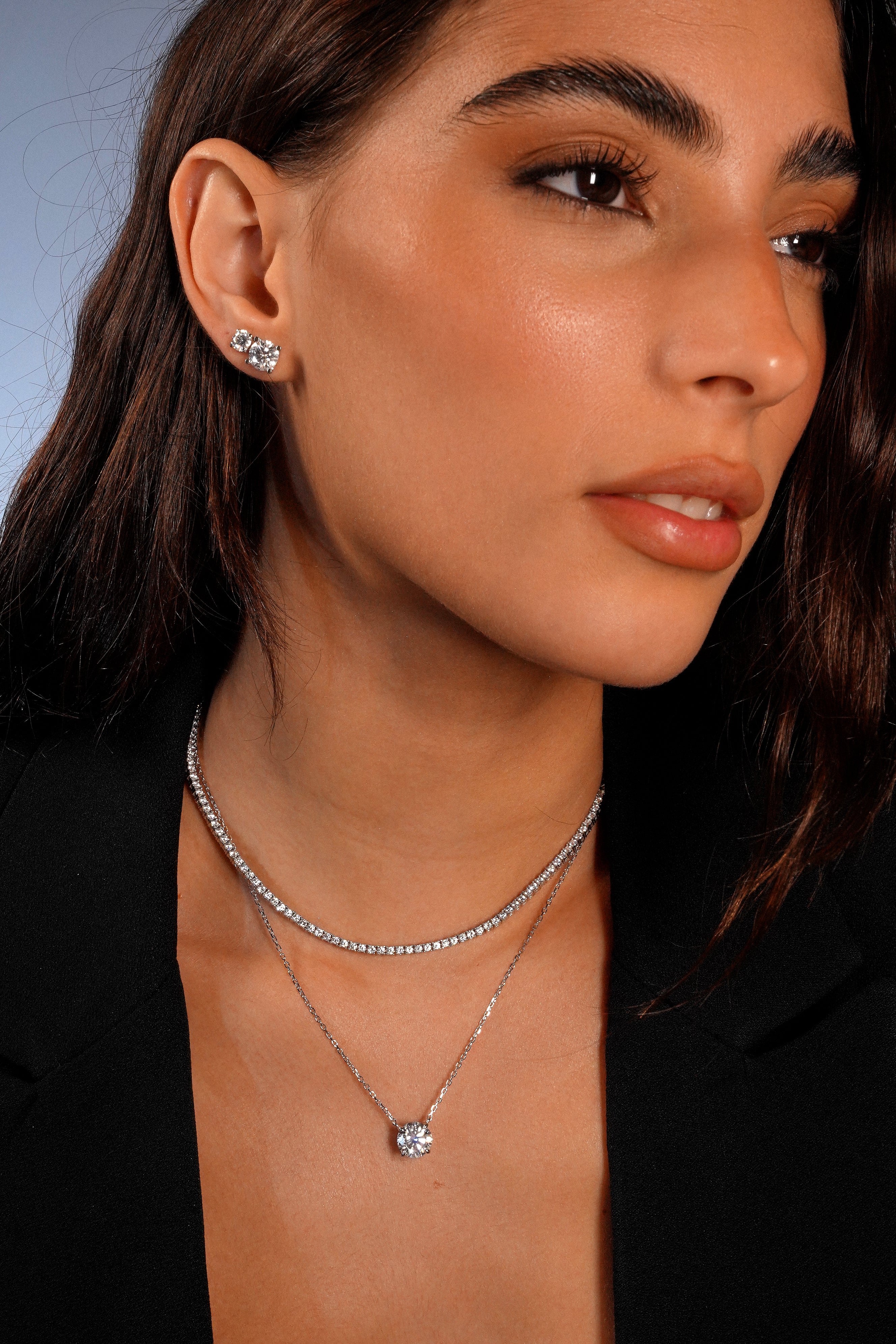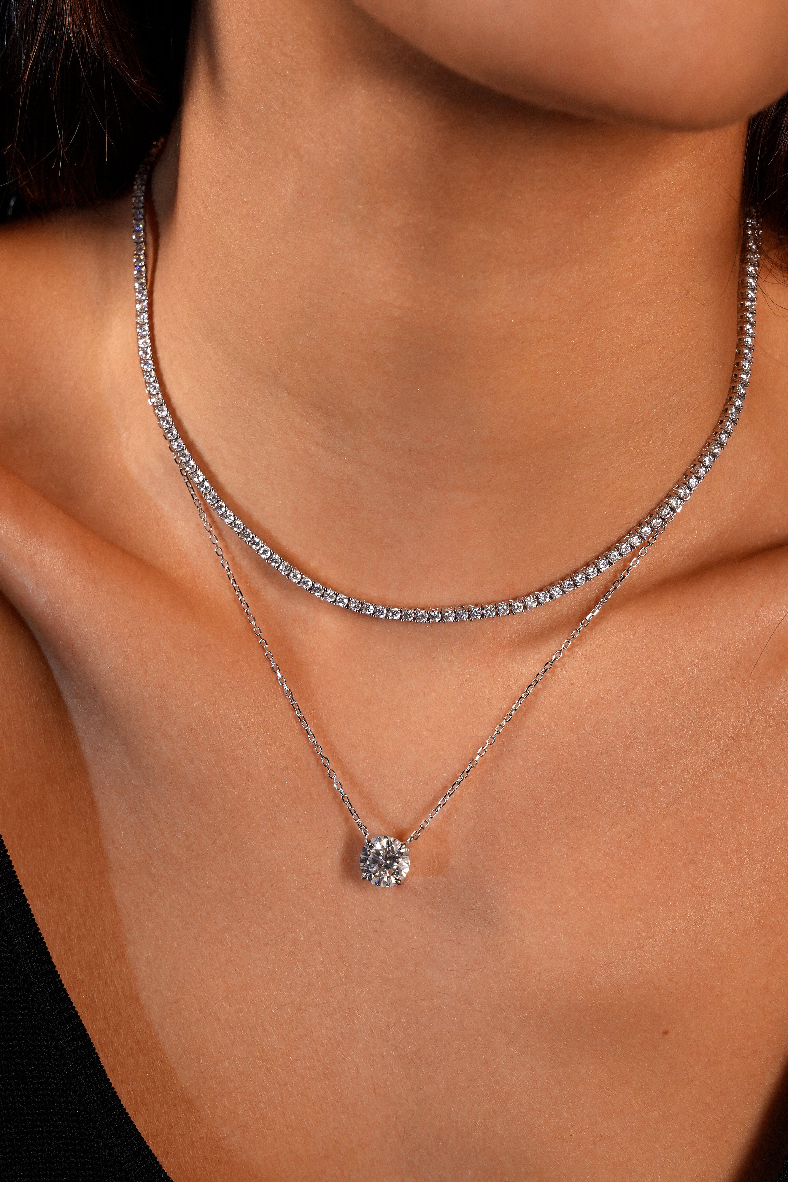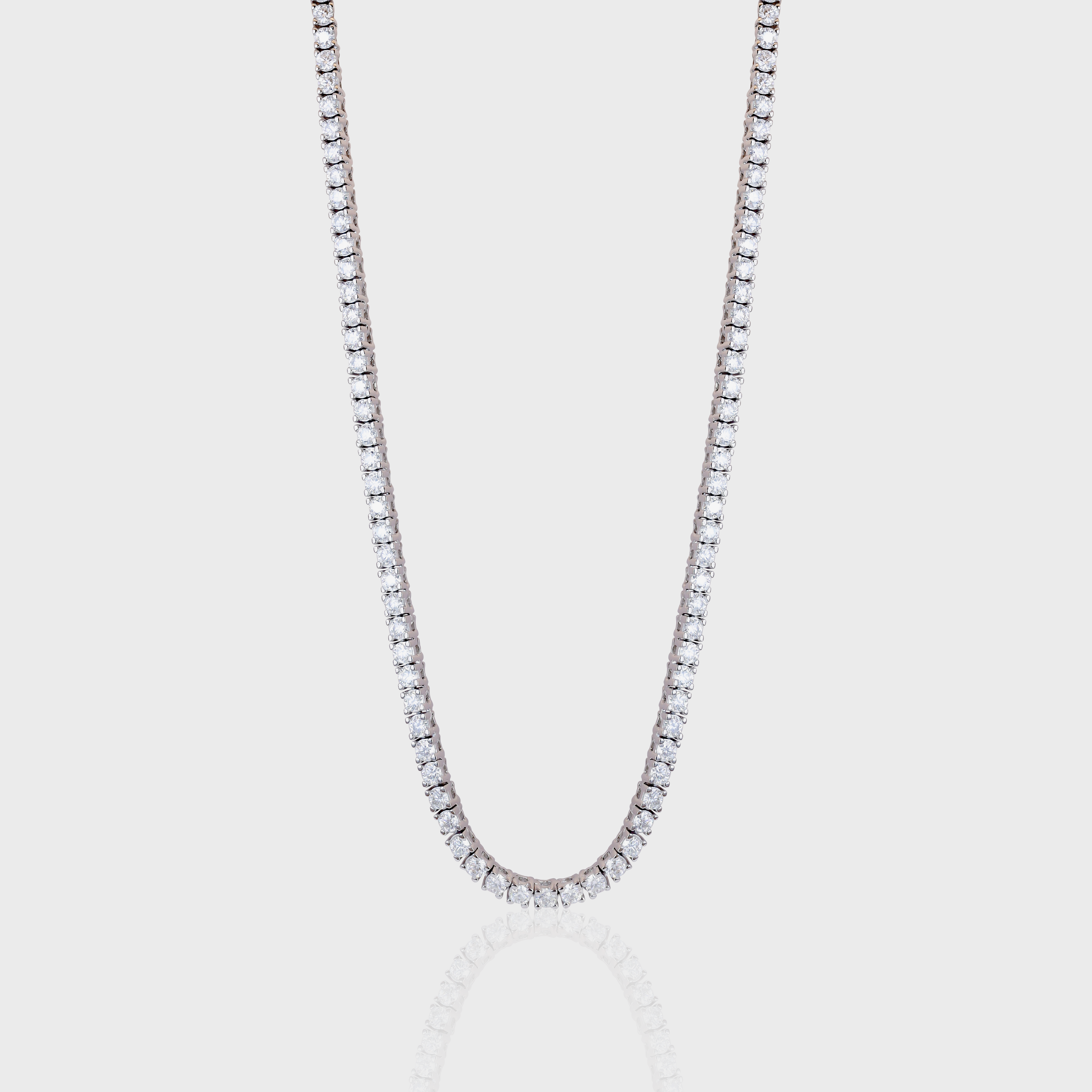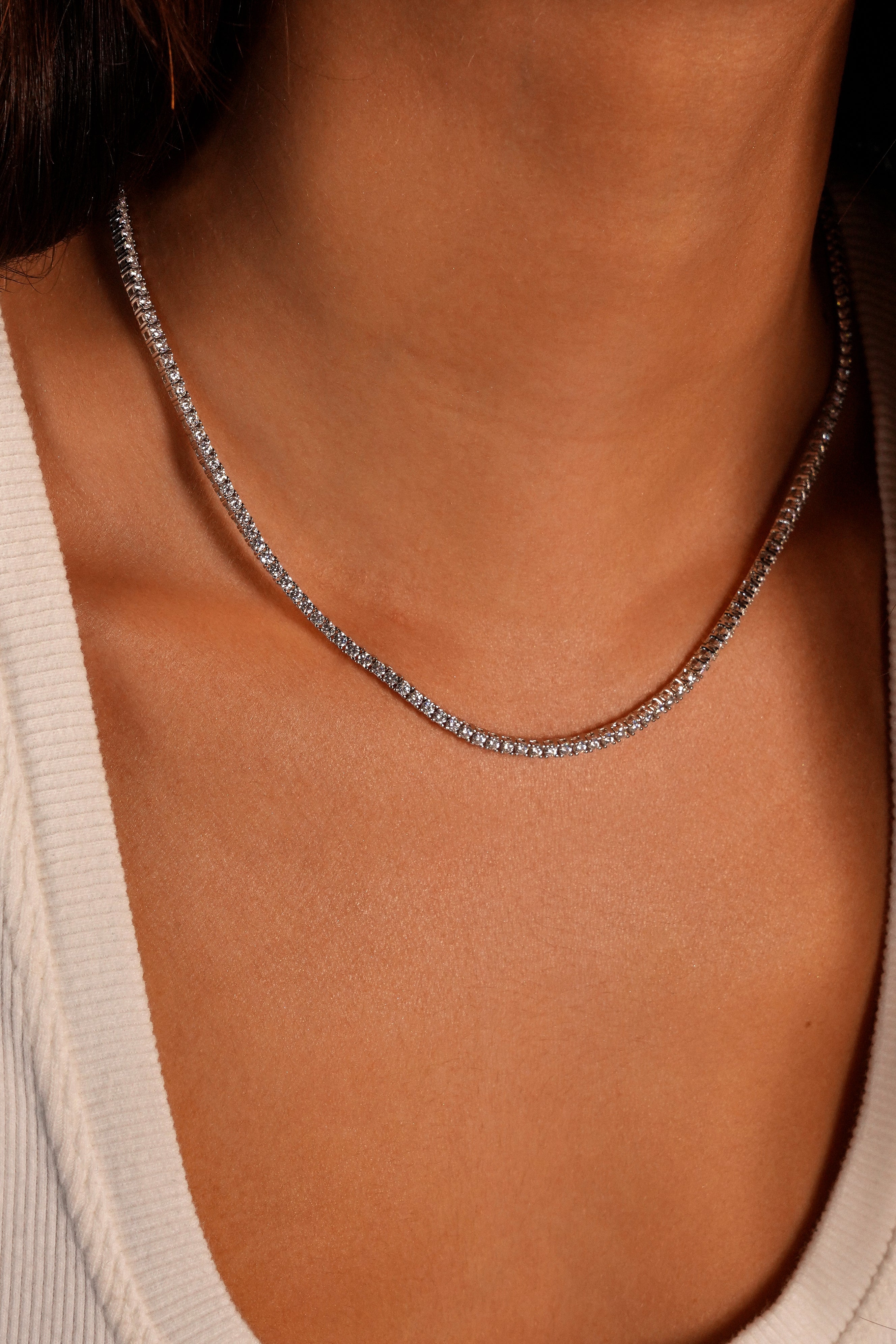 Indulge in elegant luxury with The Iconic Tennis Necklace. Handcrafted with premium Moissanite, this necklace is made of 925 sterling silver and gold/rhodium double plated for maximum durability. Available in two lengths with a sleek 2mm width, it is also nickel-free and hypoallergenic for sensitive skin.