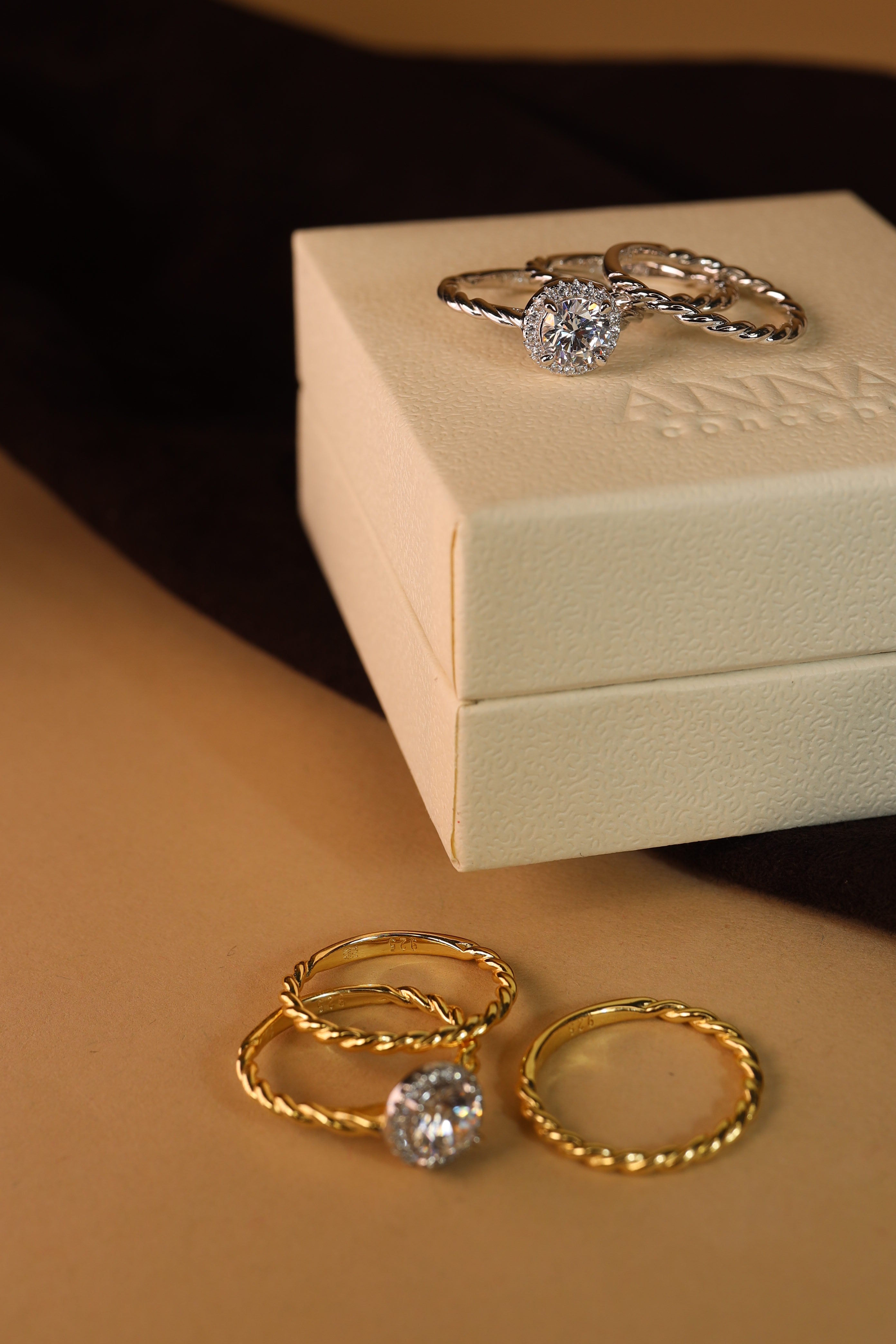 The Sparta Ring is a versatile 3-in-1 piece, offering endless styling possibilities. Featuring three separate band rings, it can be worn stacked for a bold, cohesive look or individually across different fingers for a more unique style. The standout feature is a stunning zirconia solitaire stone, adding a touch of brilliance to this minimalist yet sophisticated design. Whether you choose to stack or separate, the Sparta Ring is perfect for adding flexibility and elegance to your jewelry collection.