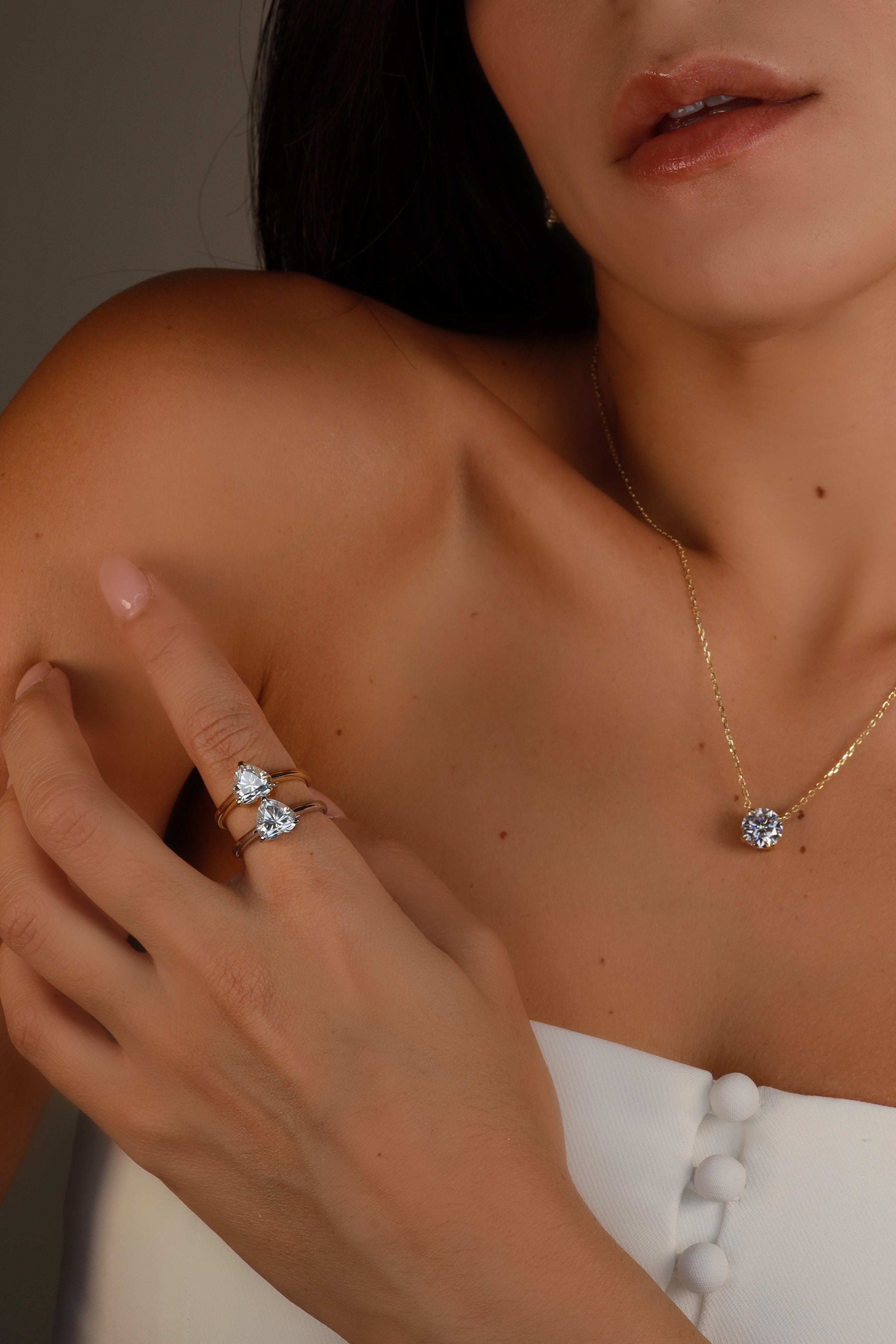 Solitaires are elegant and sophisticated, and this 2ct heart Moissanite s beautifully crafted in a three-prong setting.