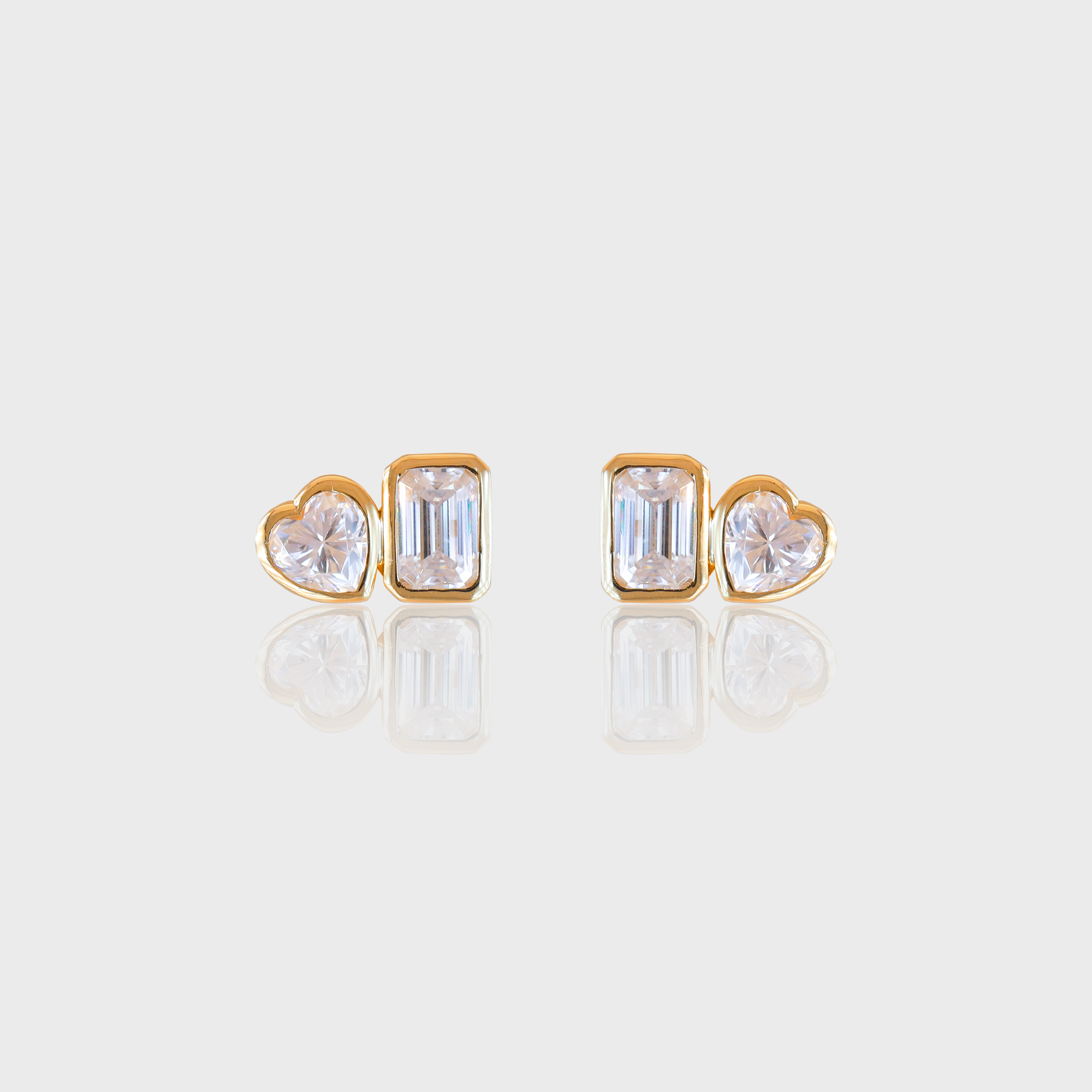 • Stones: Premium moissanite — heart-cut (5x5mm) and emerald-cut (4x6mm) — for radiant brilliance