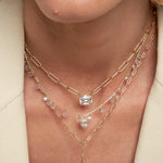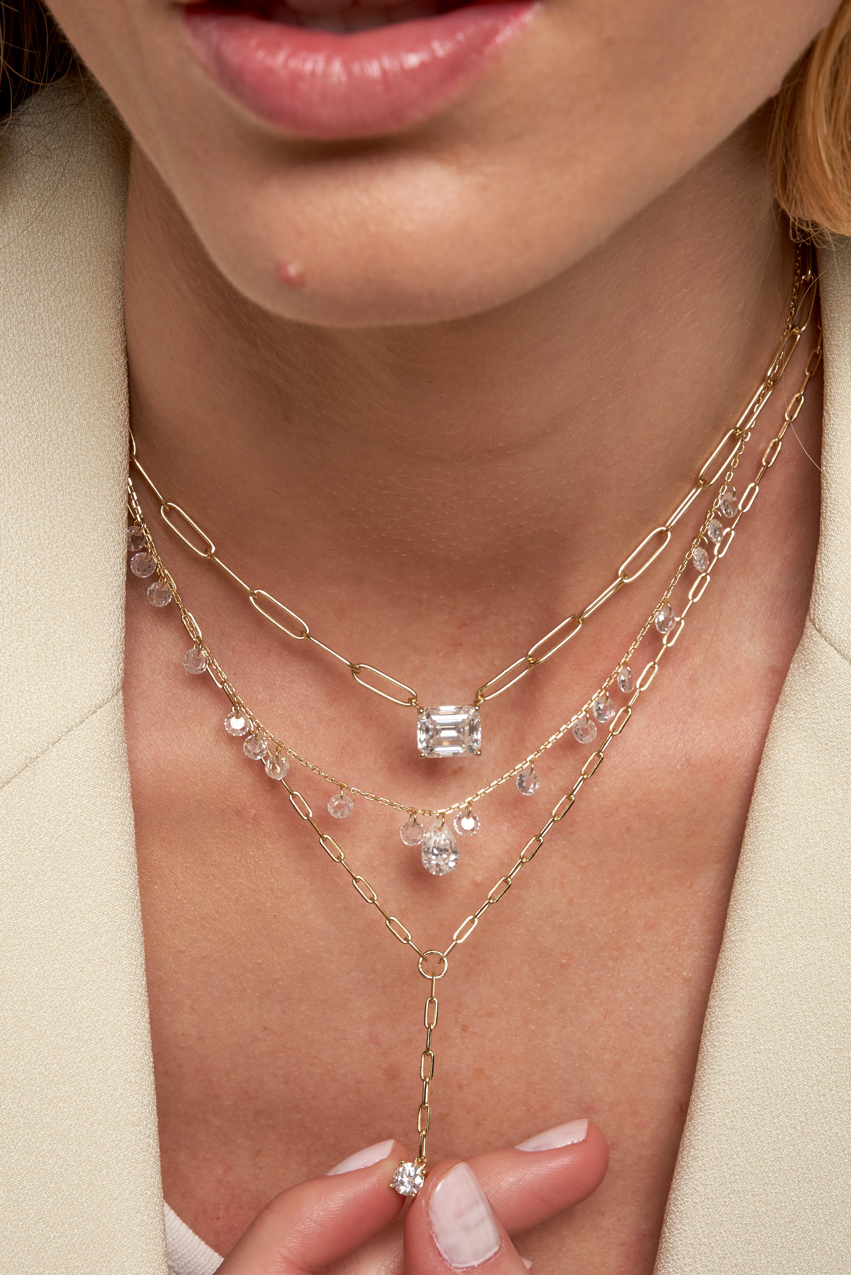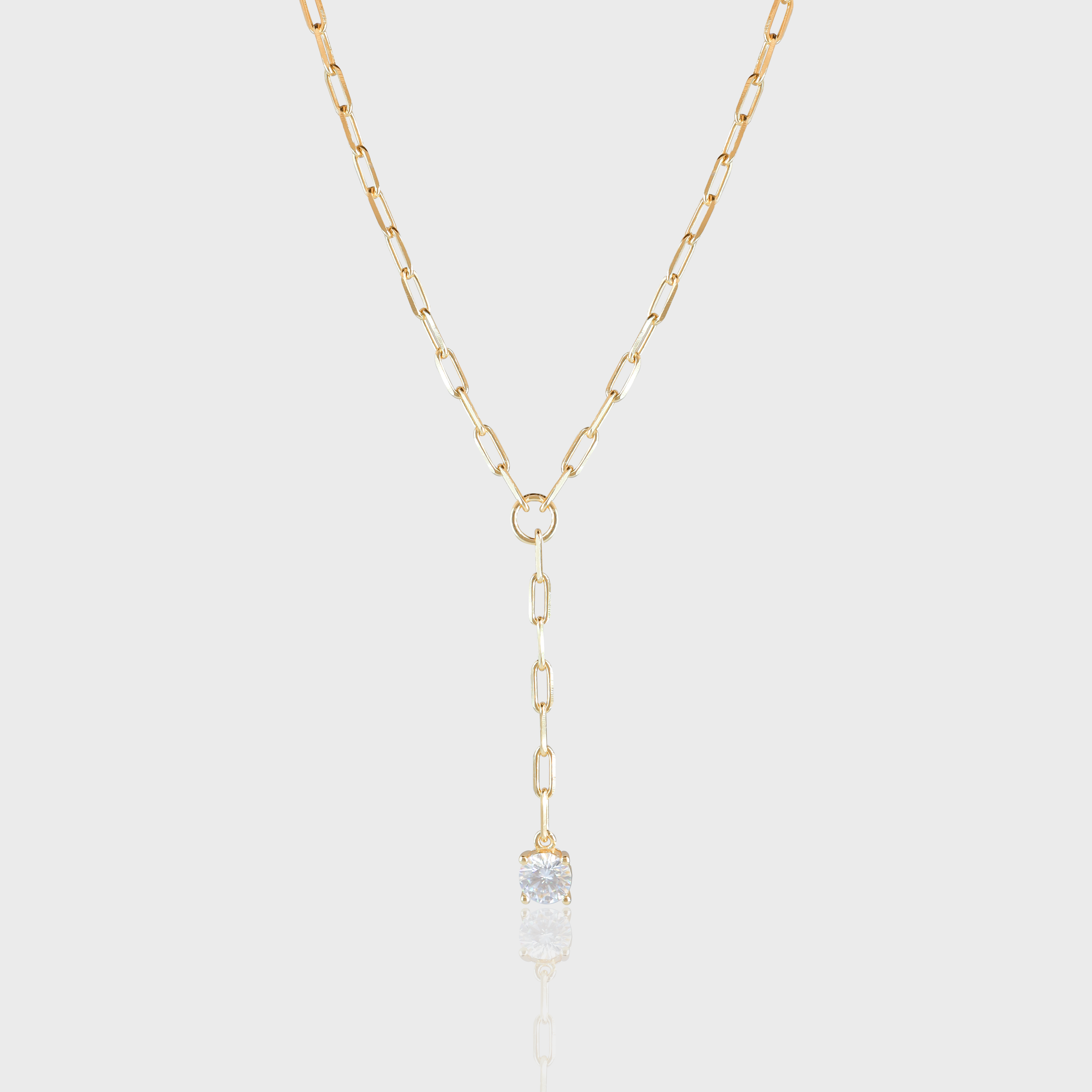 • Design: Modern chain-link silhouette with a single moissanite pendant