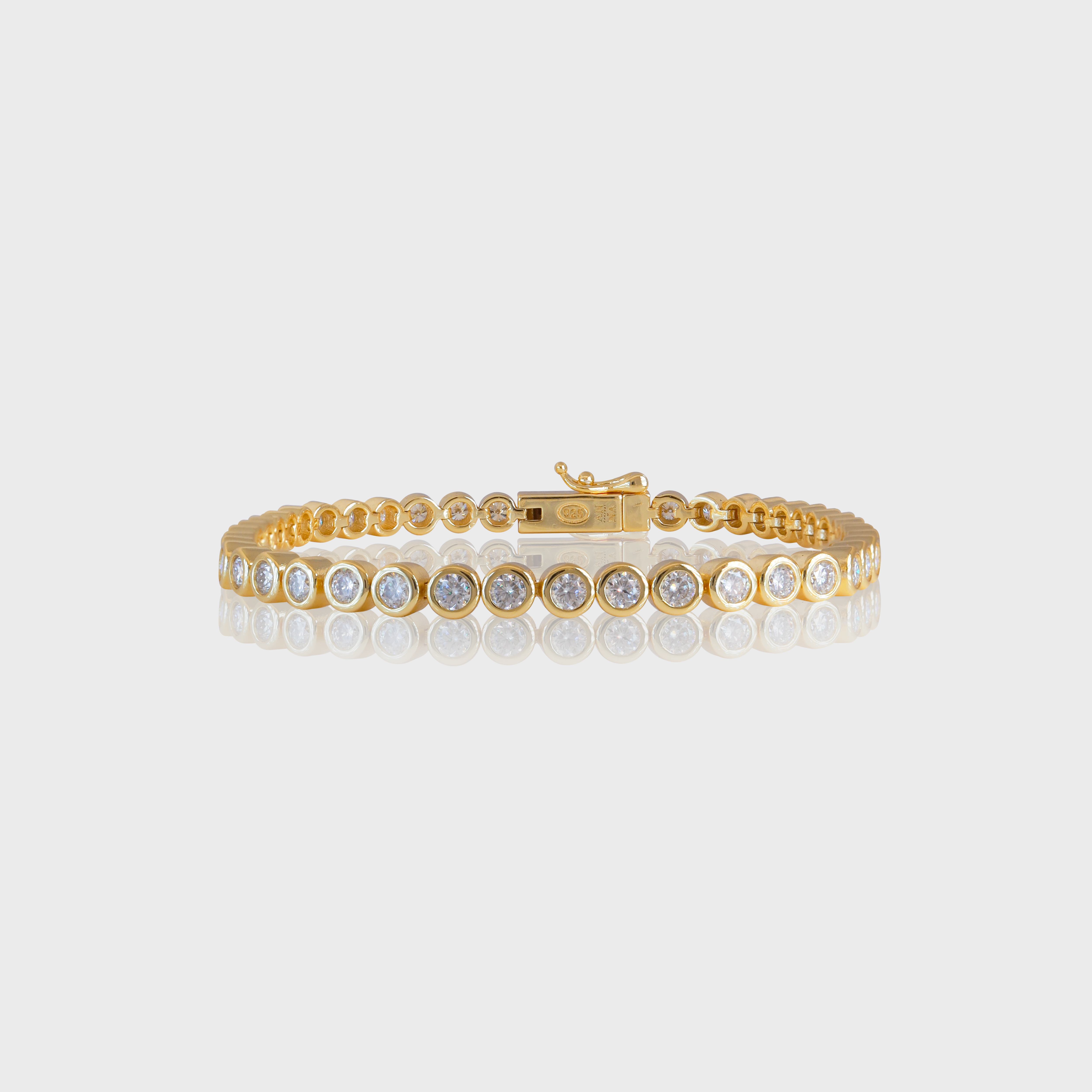• Design: Classic tennis silhouette with bezel-set moissanites for timeless elegance