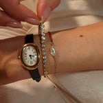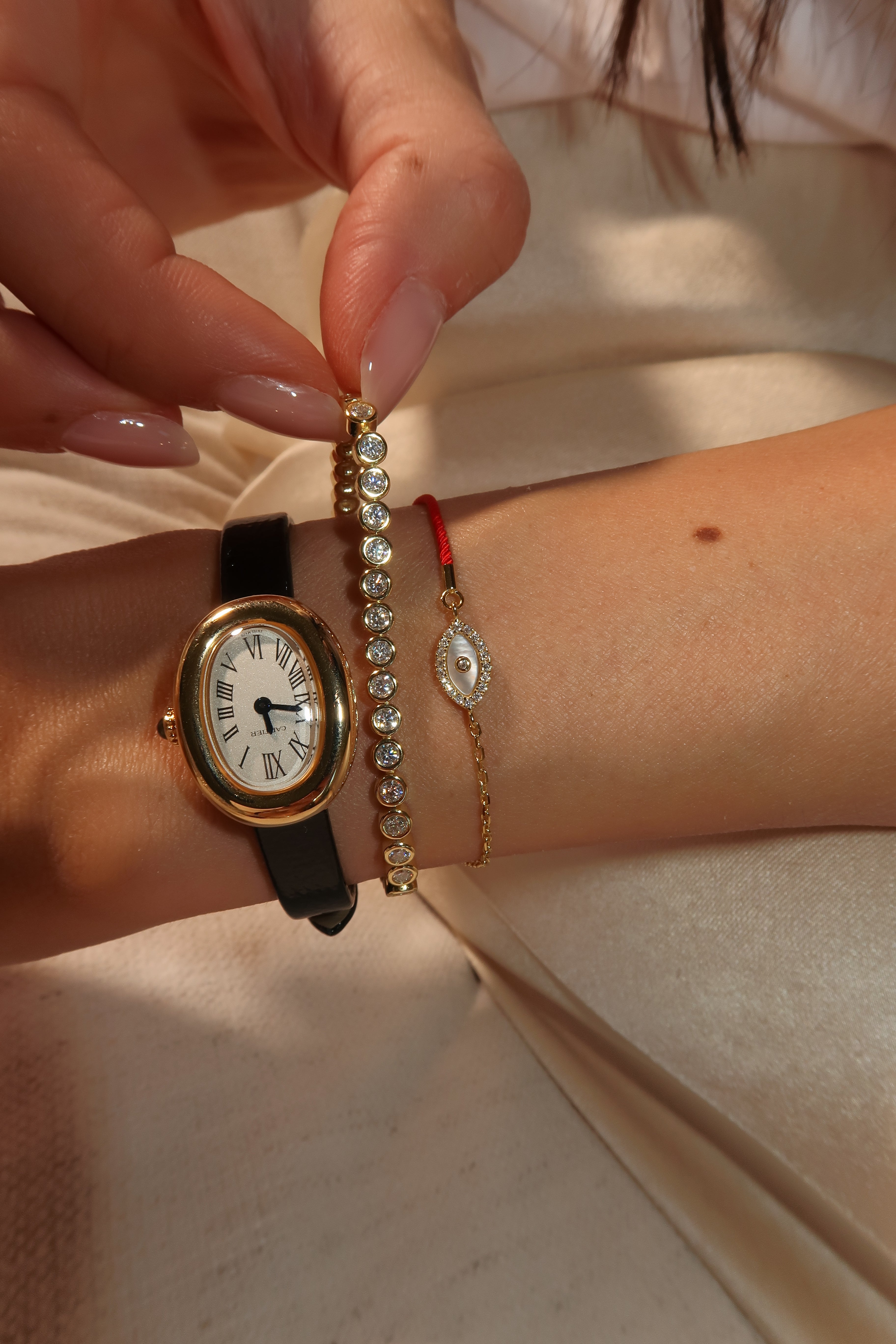 Refined brilliance, redefined. The Signature Moissanite Bracelet is an elegant embodiment of everyday luxury, featuring a continuous line of 2.5mm high-quality moissanite stones that shimmer with exceptional clarity. Crafted with precision and plated in gold or rhodium, this bracelet radiates sophistication in every detail.