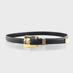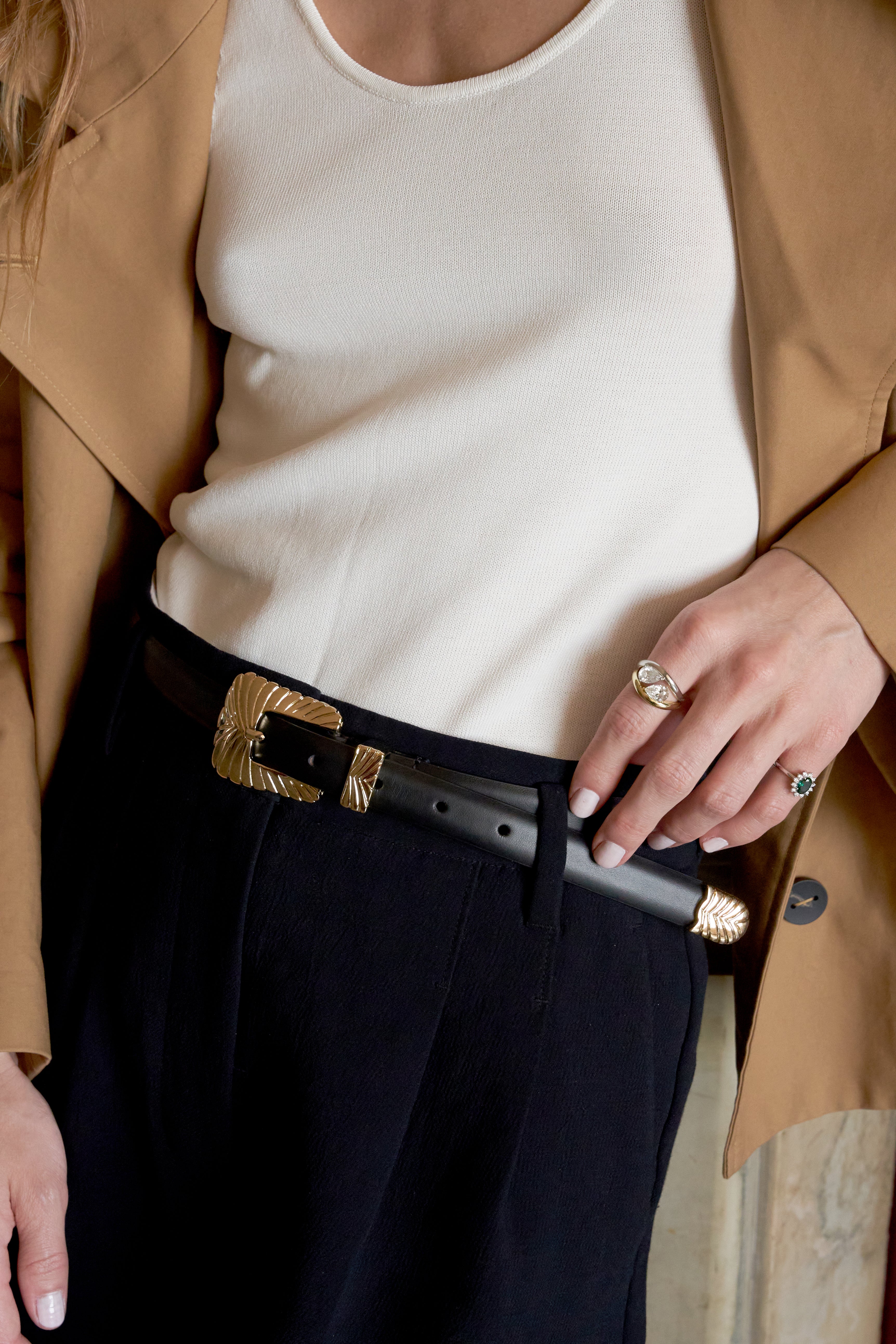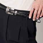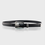 • Buckle: Sculpted gold or silver-tone Western-inspired buckle, keeper, and tip