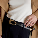 Introducing the Texas Belt, a distinctive statement piece from our Fine Leather Collection, meticulously handcrafted in Italy by master artisans. Made from supple Tuscan calfskin and finished with intricate Western-style metalwork, this belt combines elegance with character.
