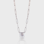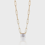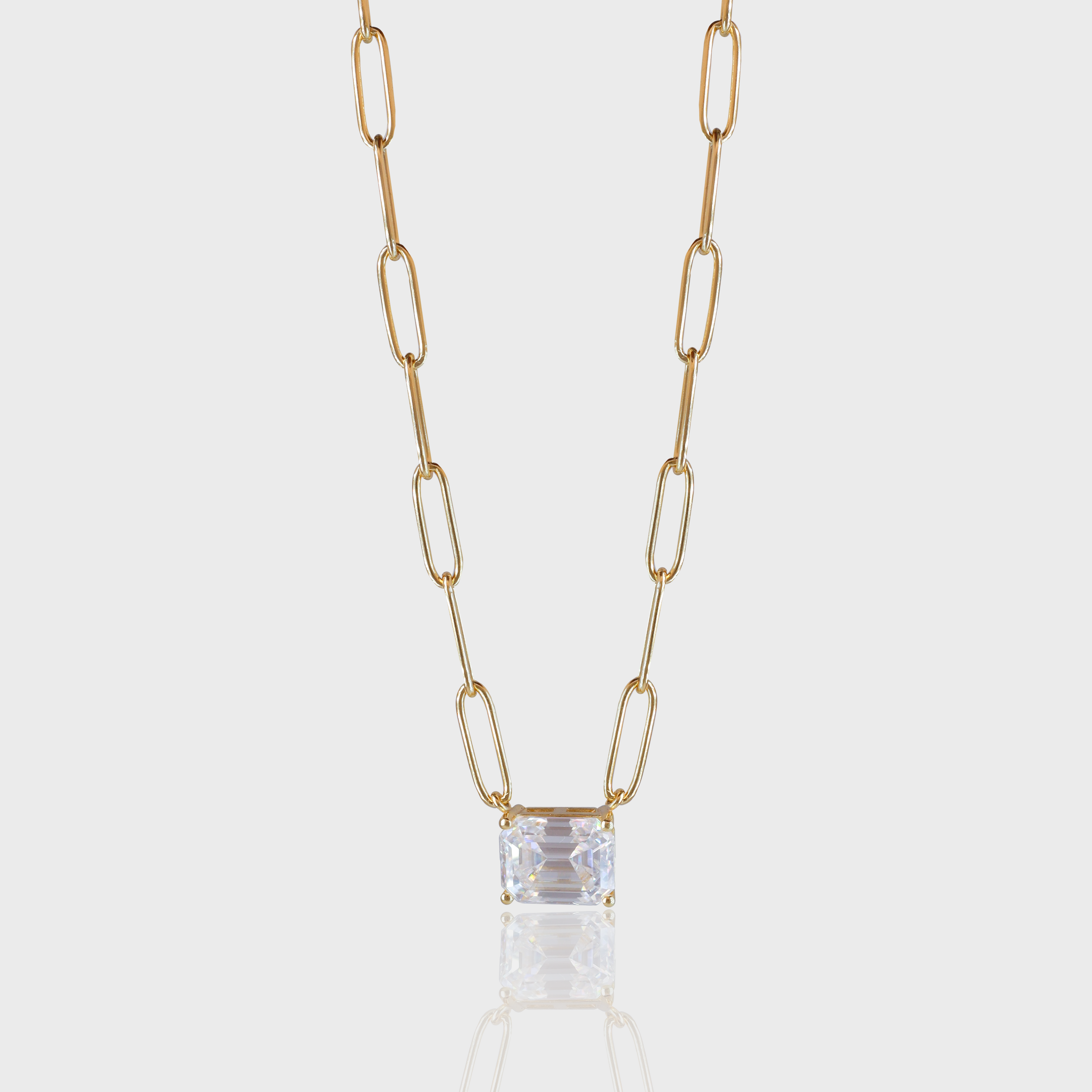 Design: Elegant rectangular-cut pendant suspended from a modern link chain