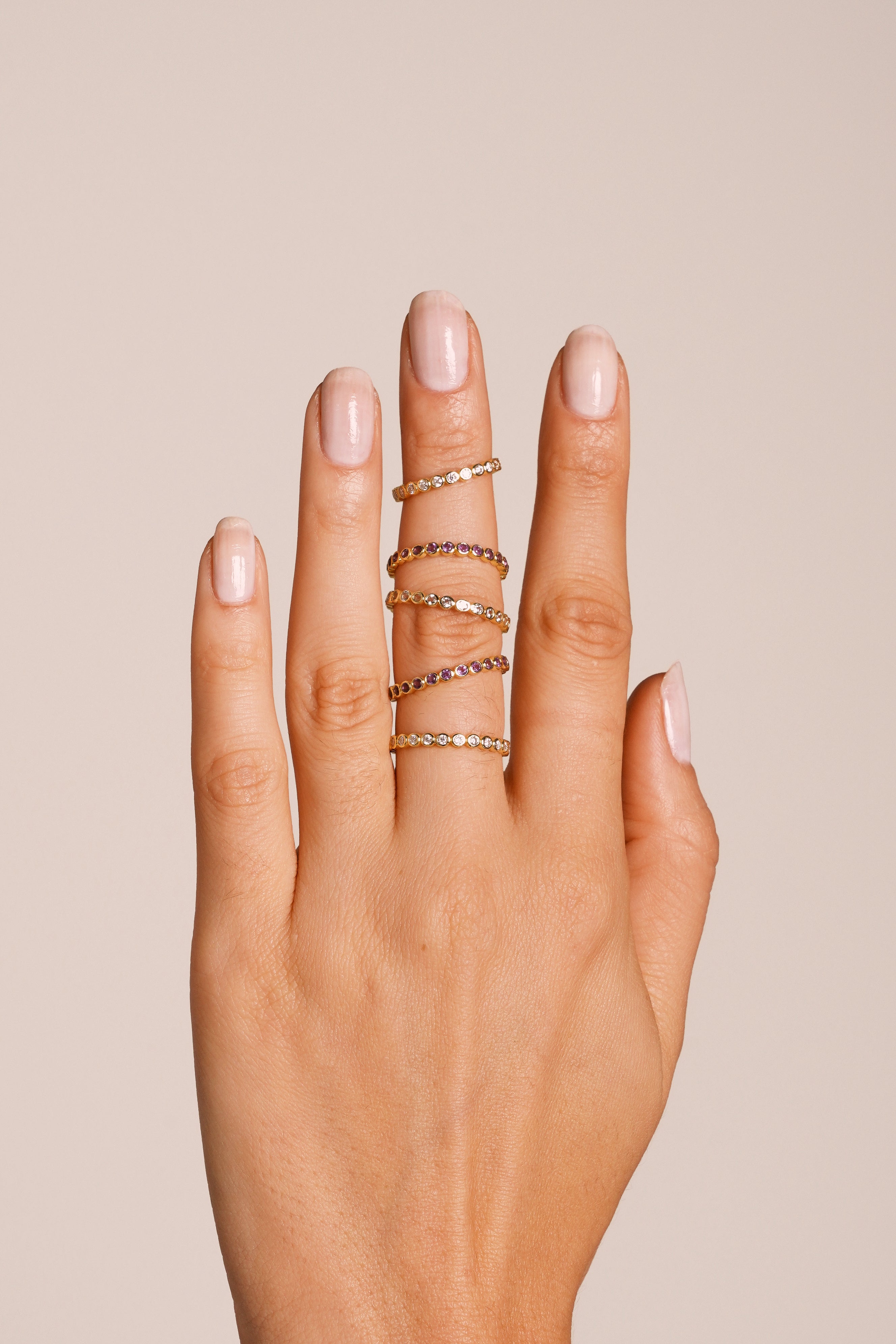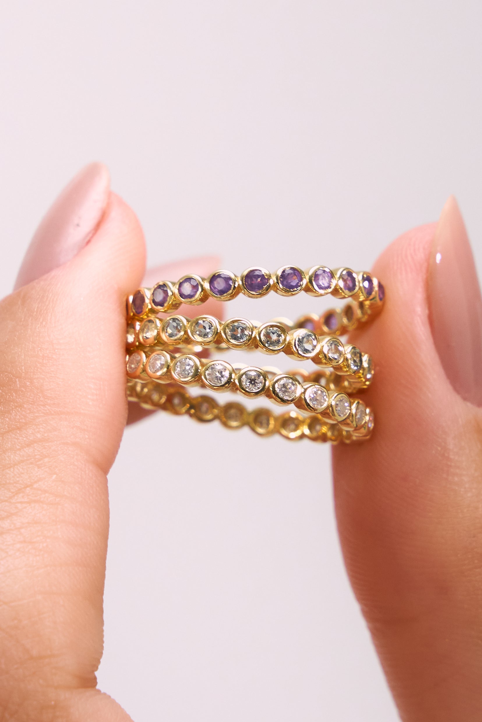 • Design: Slim, full-eternity silhouette that creates a continuous line of sparkle—ideal for stacking or wearing as a subtle statement on its own.